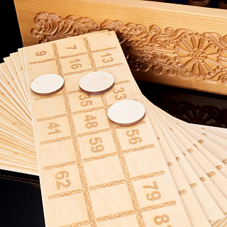 0053589/RTR-82.L Лото в резной шкатулке из ясеня «Сирин и Алконост.Песнь радости и печали»"