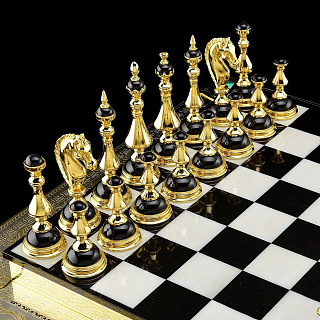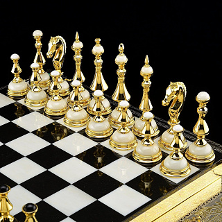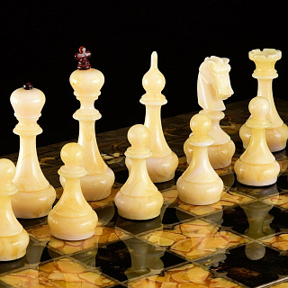 Шахматы с инкрустацией из янтаря и янтарными фигурами «Готика» 56х56 см