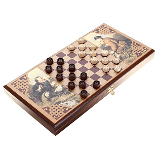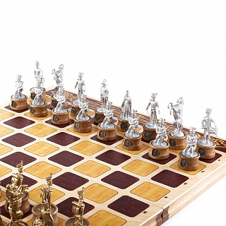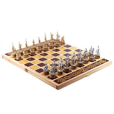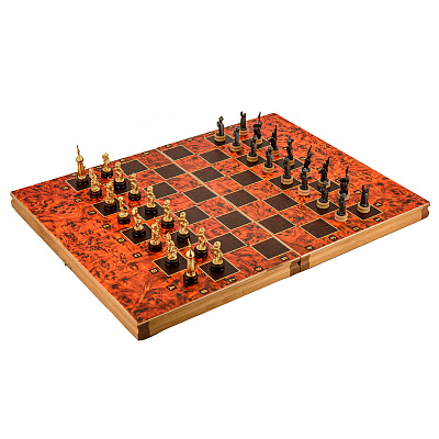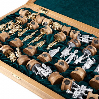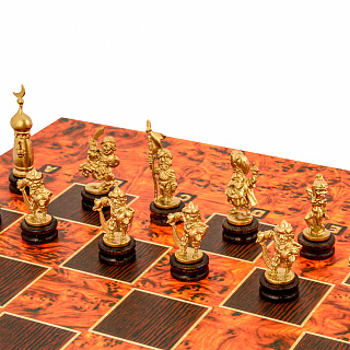 Шахматы деревянные «Крестоносцы и сарацины» с фигурами из олова 36х24 см