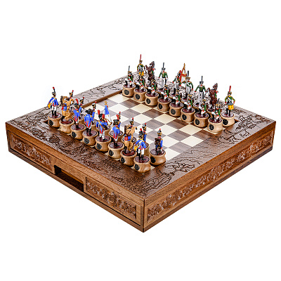 Шахматы деревянные «Битва при Ватерлоо» с фигурами из цинкового сплава 60х50 см
