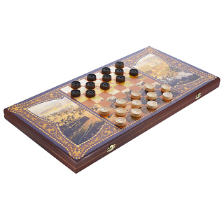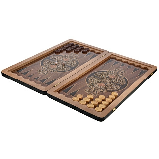 Деревянные нарды дорожные «Медведь» из карельской берёзы
