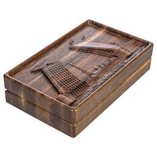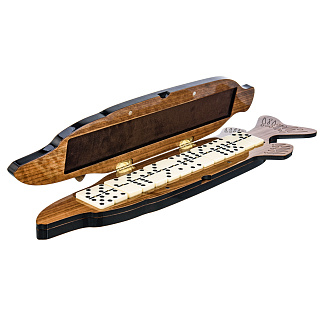 0066408/Домино D6 в резной дубовой шкатулке «Бурлаки на Волге» RTD-308.M