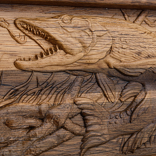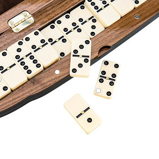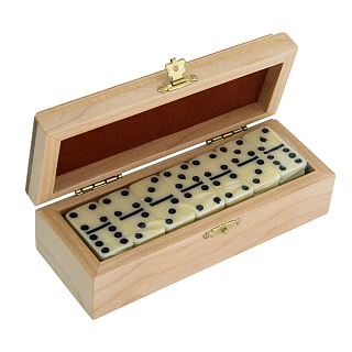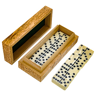 0053585 Домино D6 в резной дубовой шкатулке «ОХОТНИКИ НА ПРИВАЛЕ» RTD-306.M