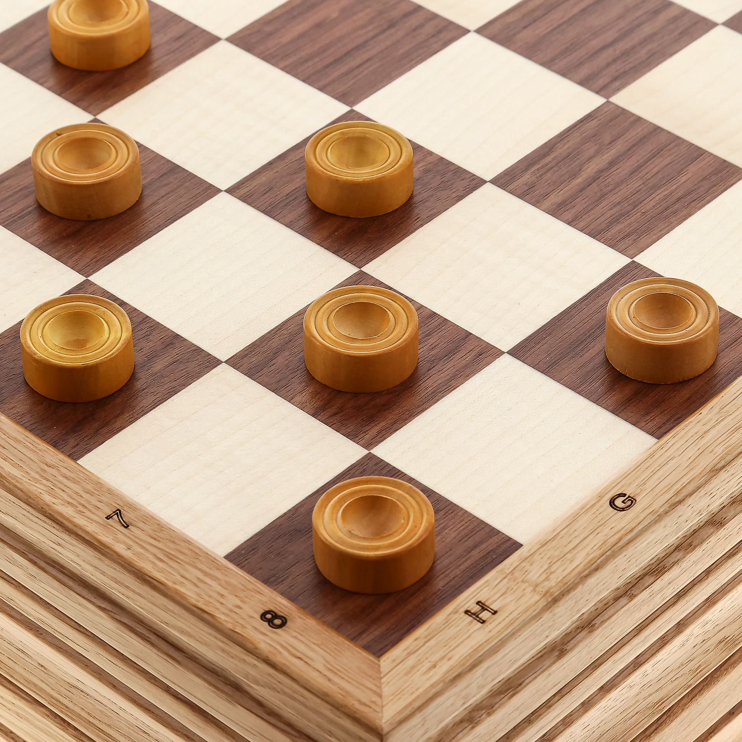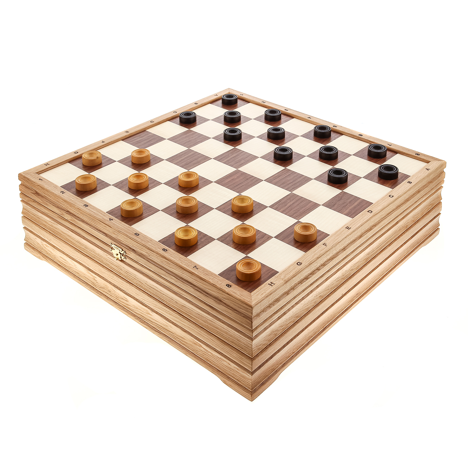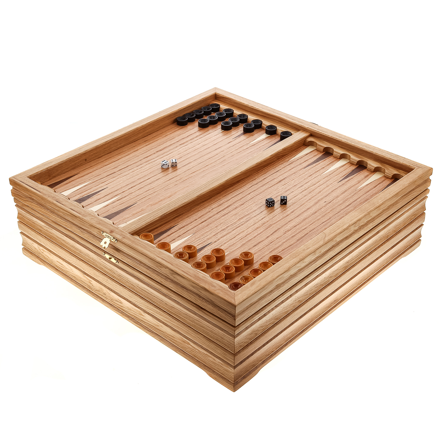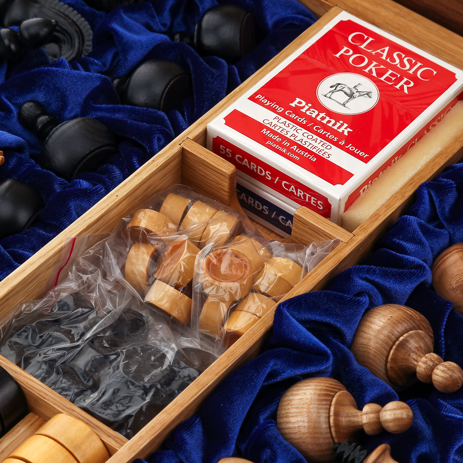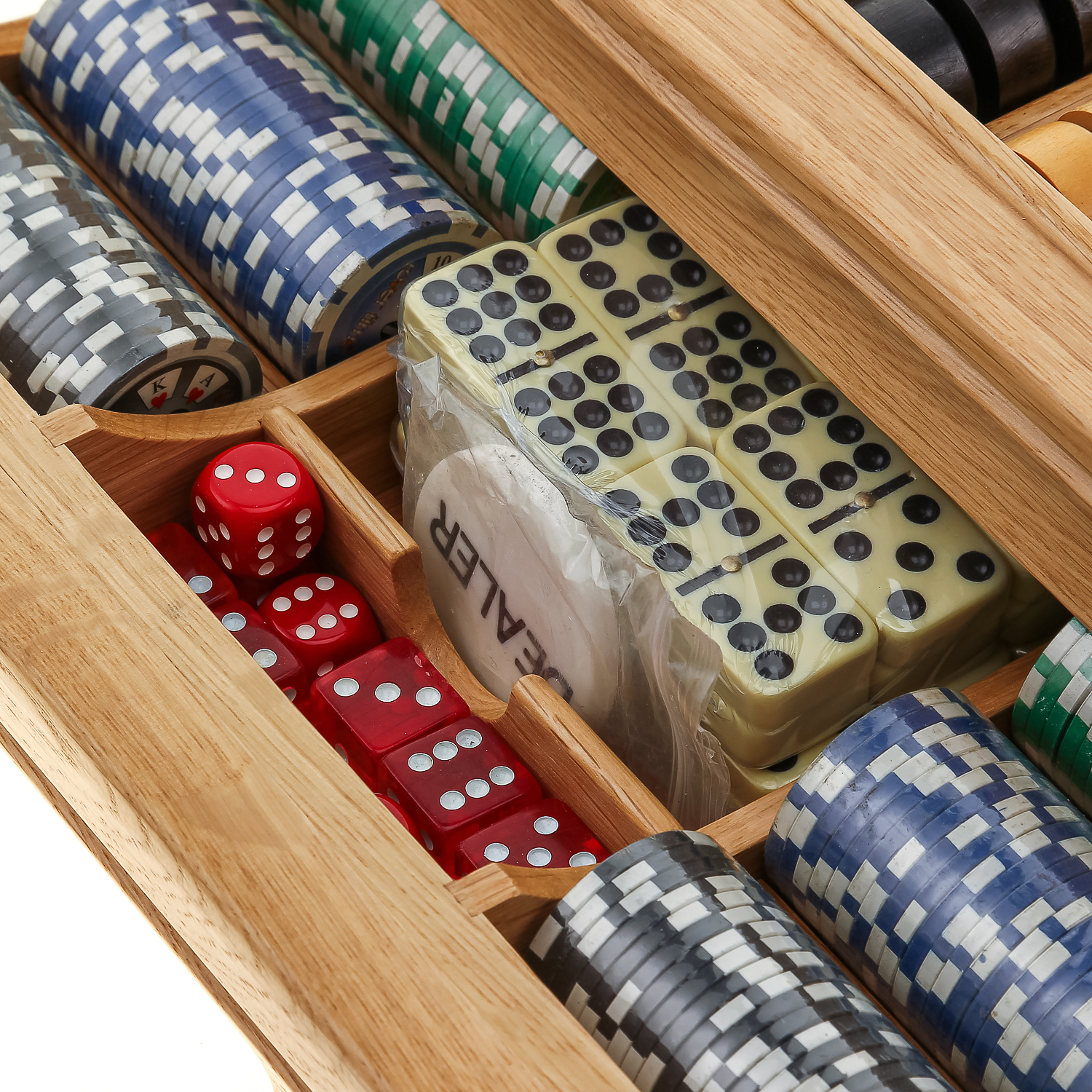 Набор настольных игр в деревянной шкатулке (шахматы, нарды, шашки, домино, карты, кости, фишки для покера).