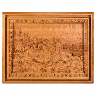 Русское лото в резной шкатулке из ясеня «Охотники на привале»