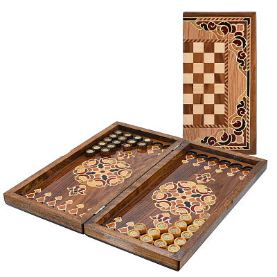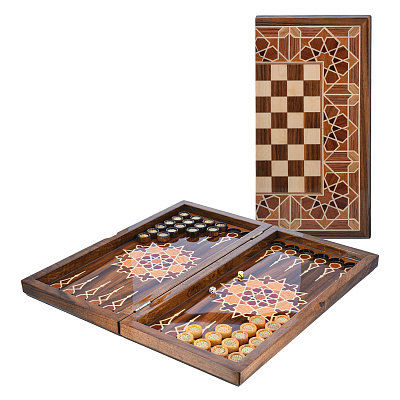 Нарды-шашки-шахматы деревянные маркетри «Звезда востока» 49х25 см