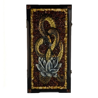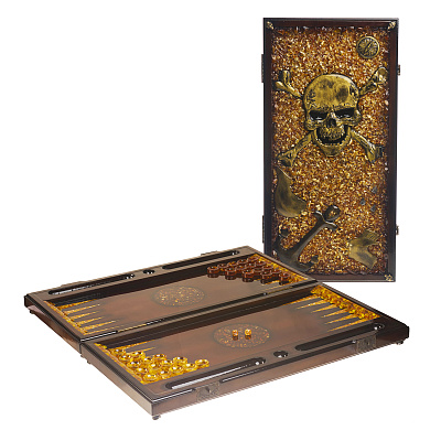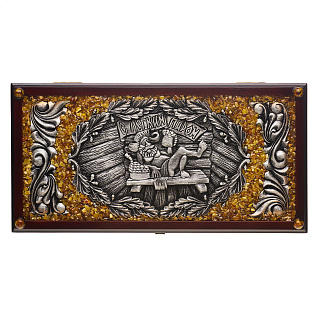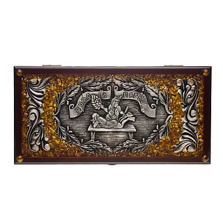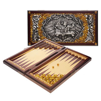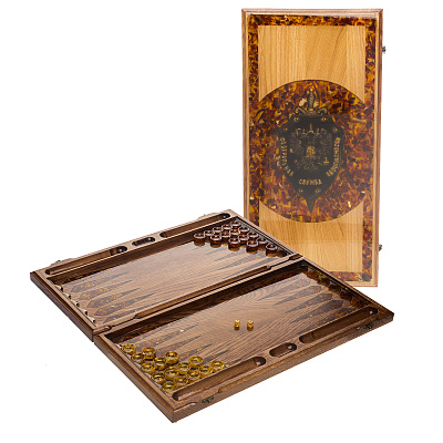 Нарды-шашки с инкрустацией и янтарными фишками «Восточные» 50х25 см