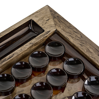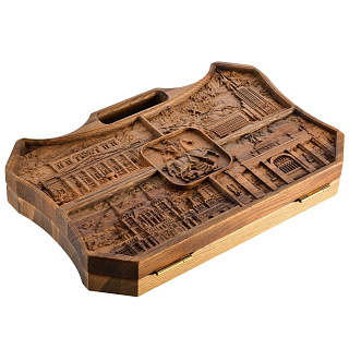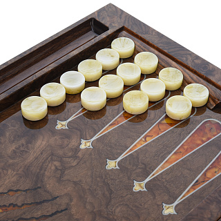 В этом собрании Вы найдете как классические, оформленные в строгом и одновременно элегантном стиле нарды, так и совершенно фантастические экземпляры, с нетривиальным дизайном. Каждая работа, вошедшая в собрание, создавалась по эксклюзивному эскизу. Для изготовления досок и фишек мастера использовали специально отобранную древесину ясеня, березы, дуба и других дорогостоящих пород дерева.