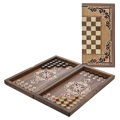 Нарды-шашки деревянные маркетри «Звезда востока» 49х25 см
