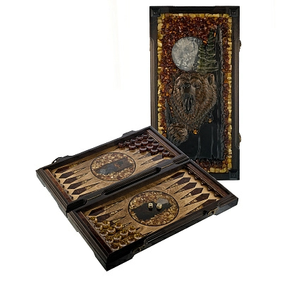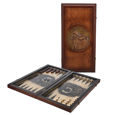 Деревянные нарды дорожные «Медведь» из карельской берёзы