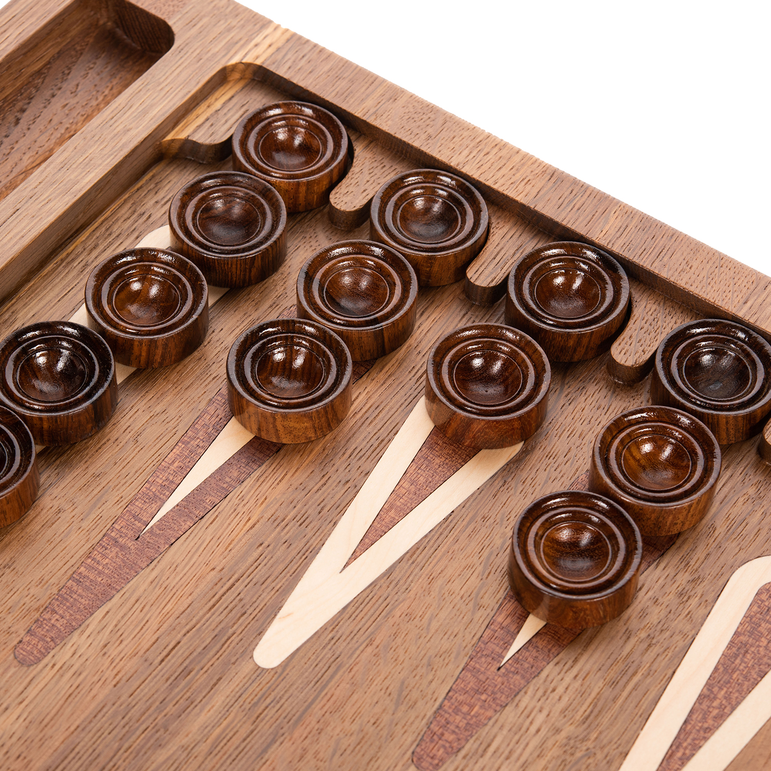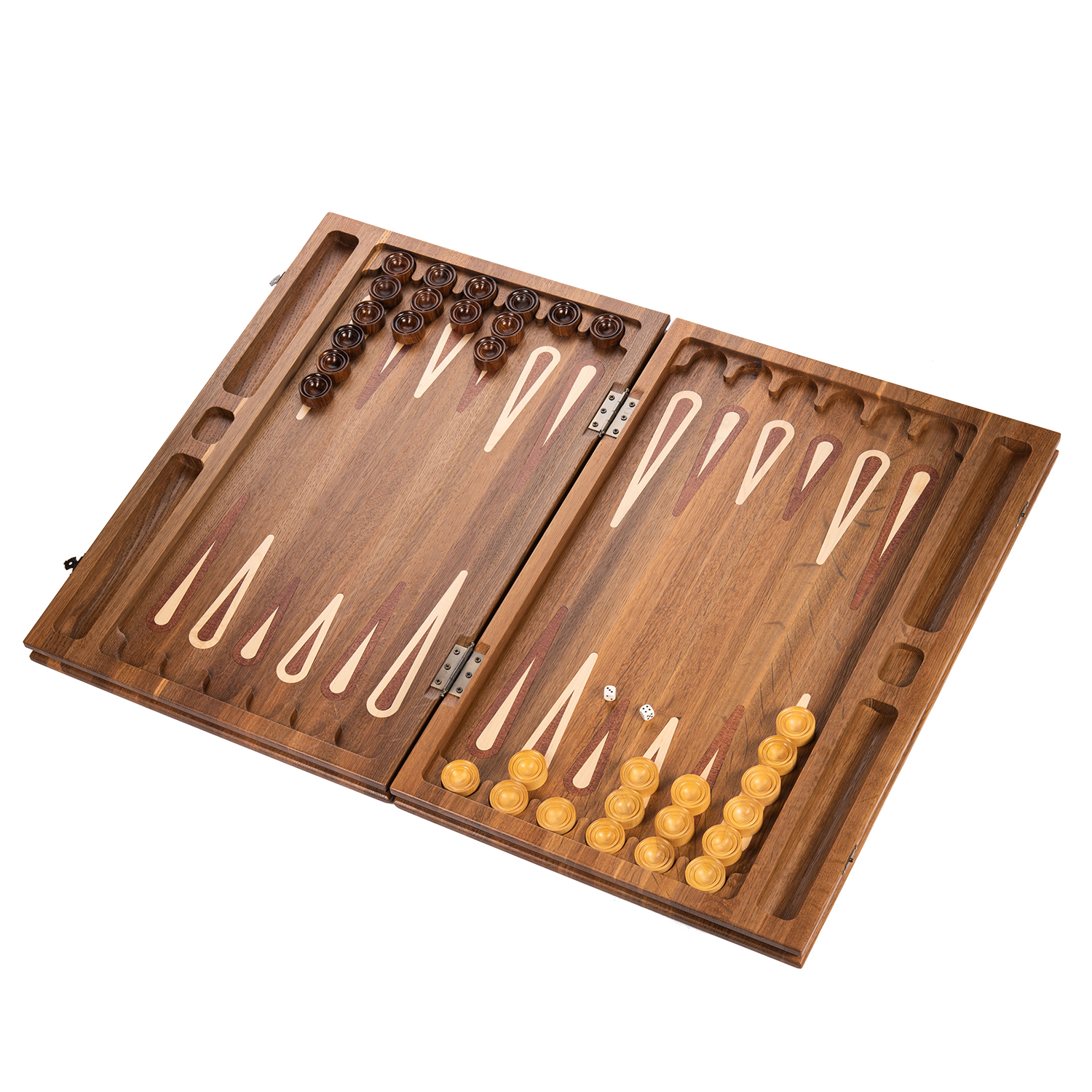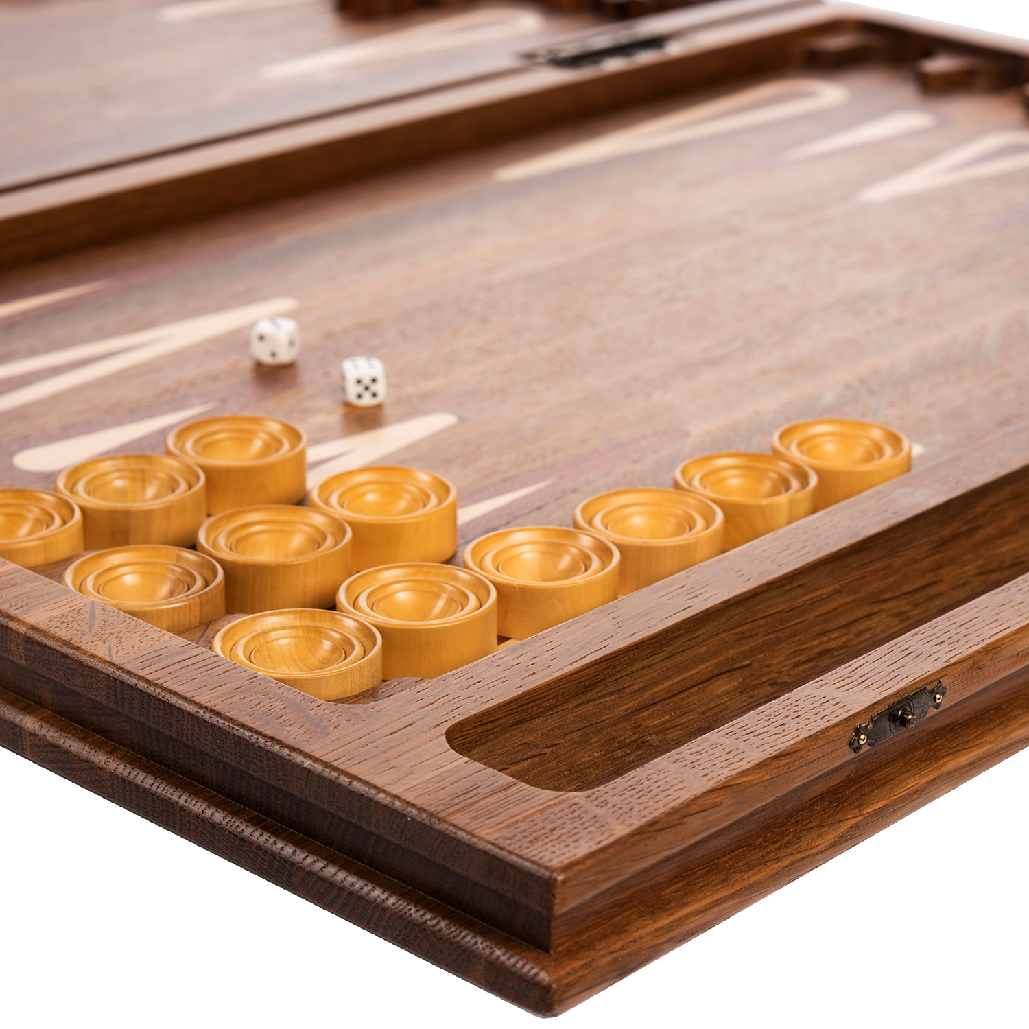 Подарочные нарды «Былинные» – это настоящее произведение искусства, созданное руками талантливых мастеров по авторскому эскизу. Они выполнены из цельного массива морёного дуба, который отличает великолепная текстура и приятный естественный оттенок. Нарды украшены при помощи художественной резьбы по дереву. Сюжеты, нанесённые на внешнюю сторону доски, изображают героев русских народных былин и эпосов. Такие нарды станут отличным подарком, хранящим в себе теплоту рук мастеров и дух Руси.