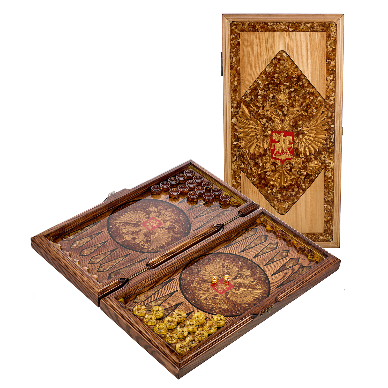 Нарды янтарные "Герб РФ".