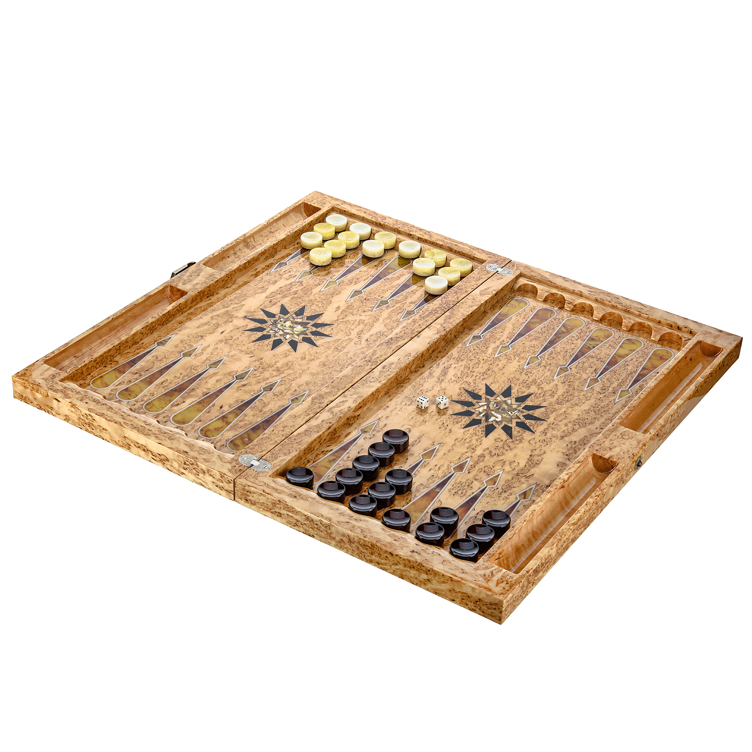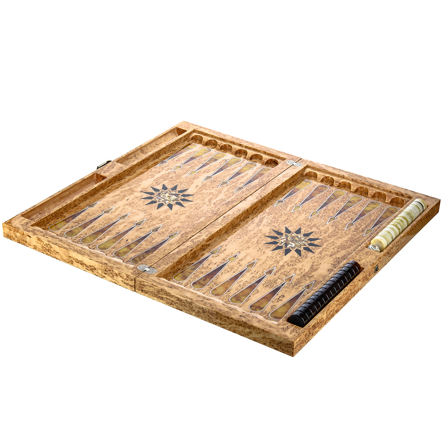 Нарды из карельской березы с инкрустацией из янтаря «Сокол» 60х32,5 см