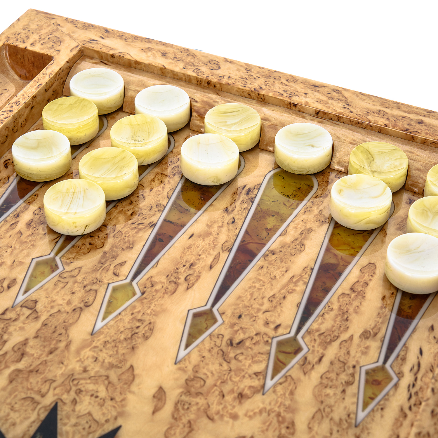 Нарды из ясеня с инкрустацией и фишками из янтаря «Леопард»