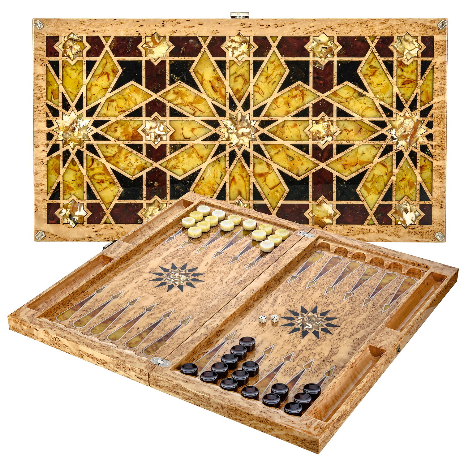 Нарды янтарные "Орнамент".