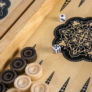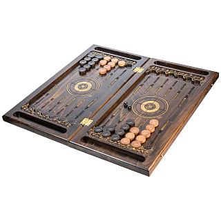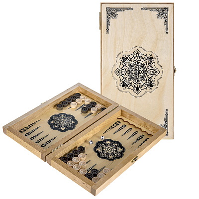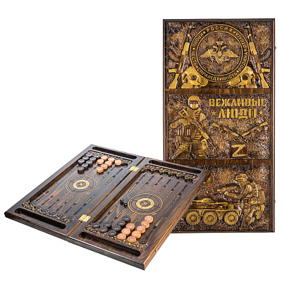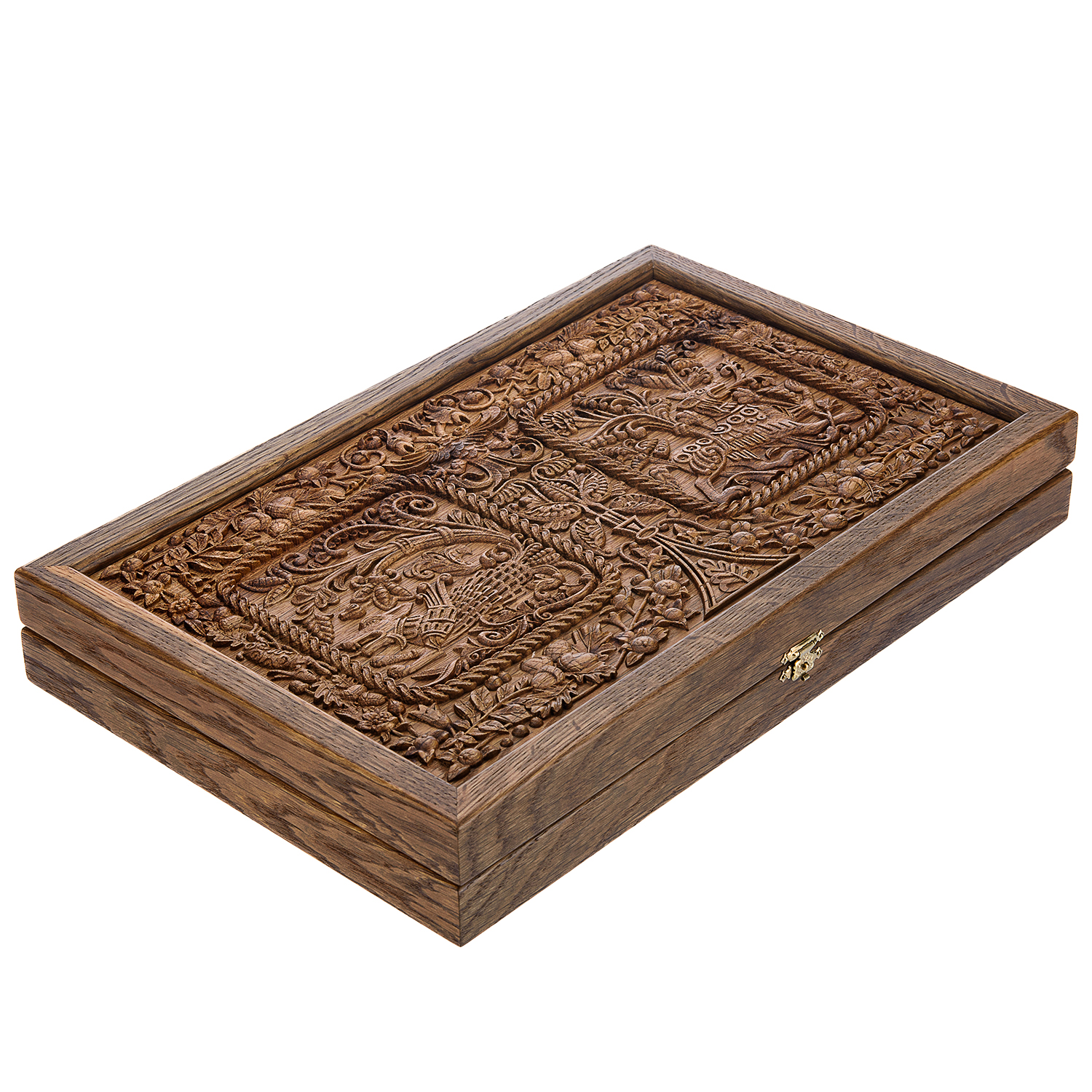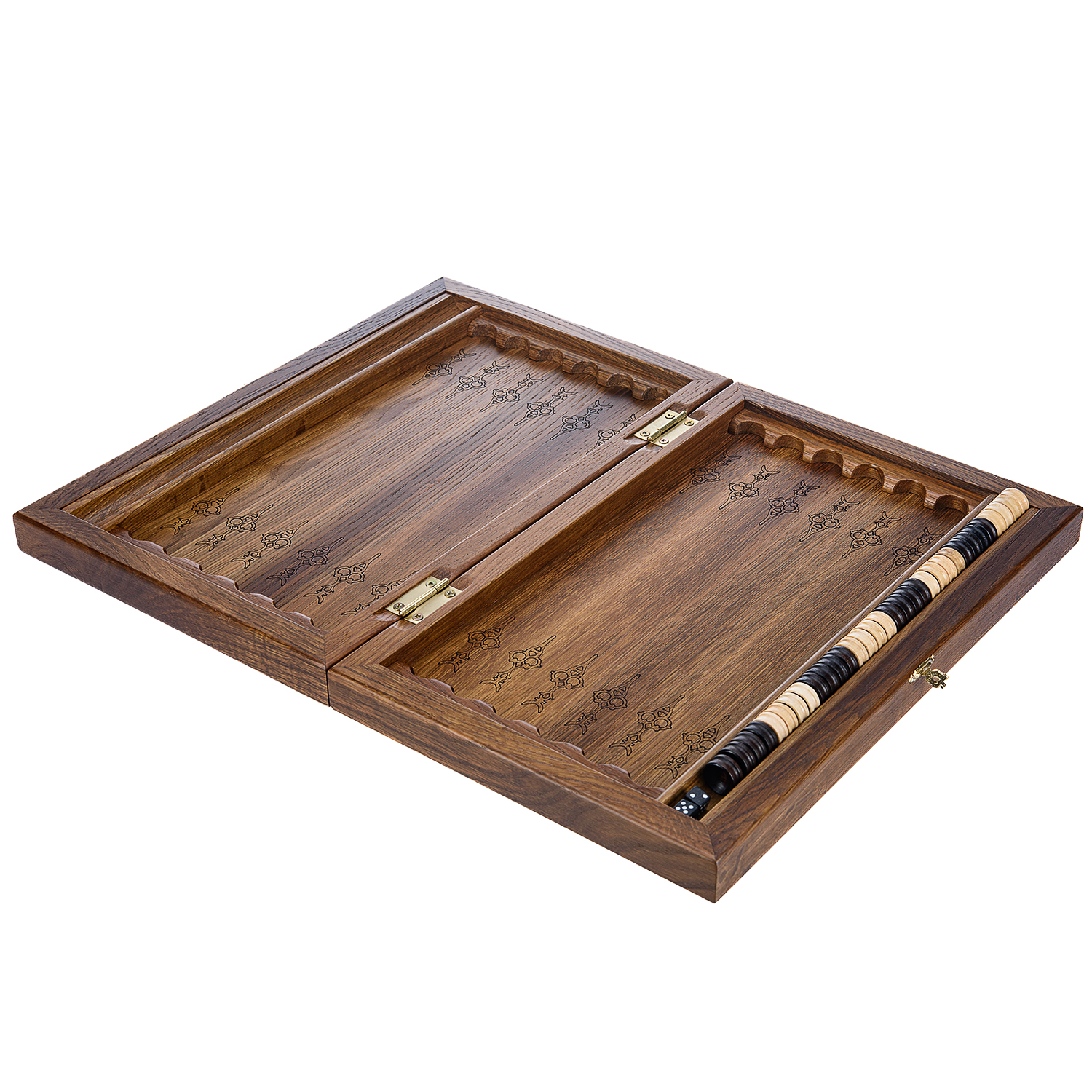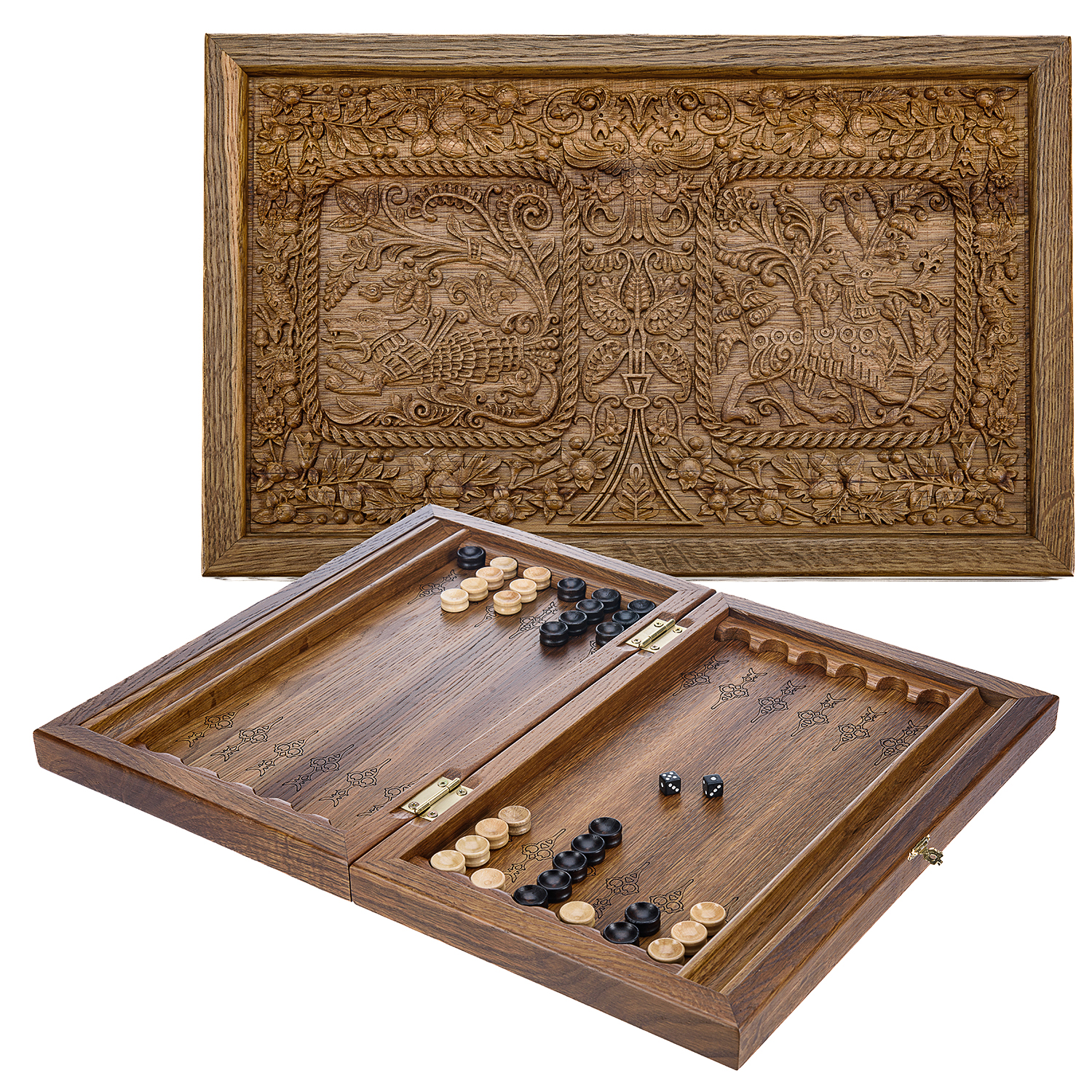 Резные деревянные нарды-шашки "Волк и песиглавец".