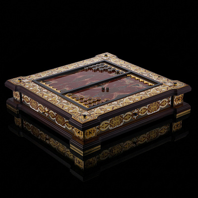 Нарды из натурального камня с позолотой. Златоуст 65х65 см