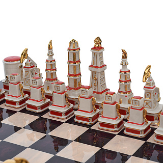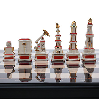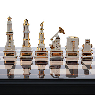 Шахматы с фигурами из фарфора «Нефть» 48х48 см