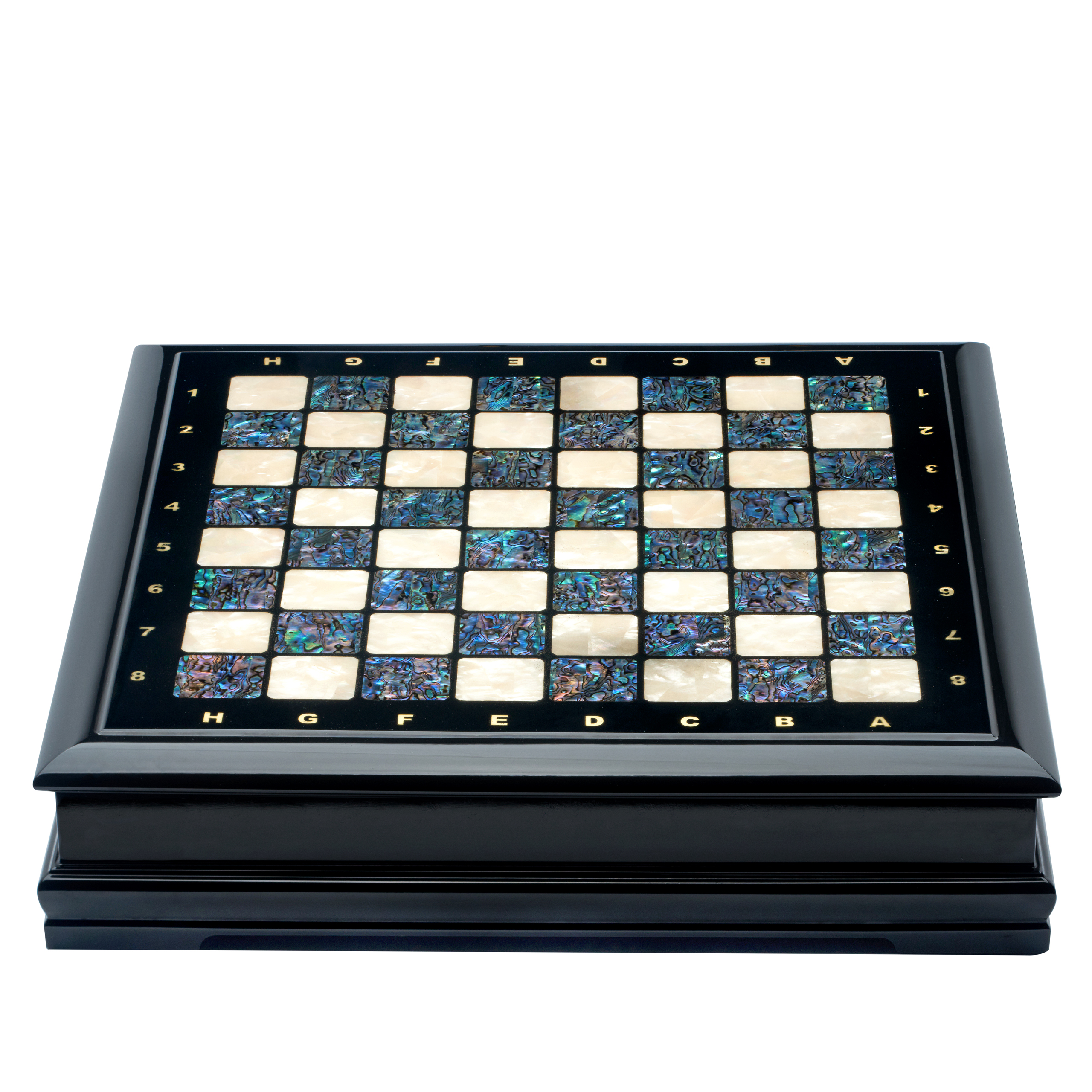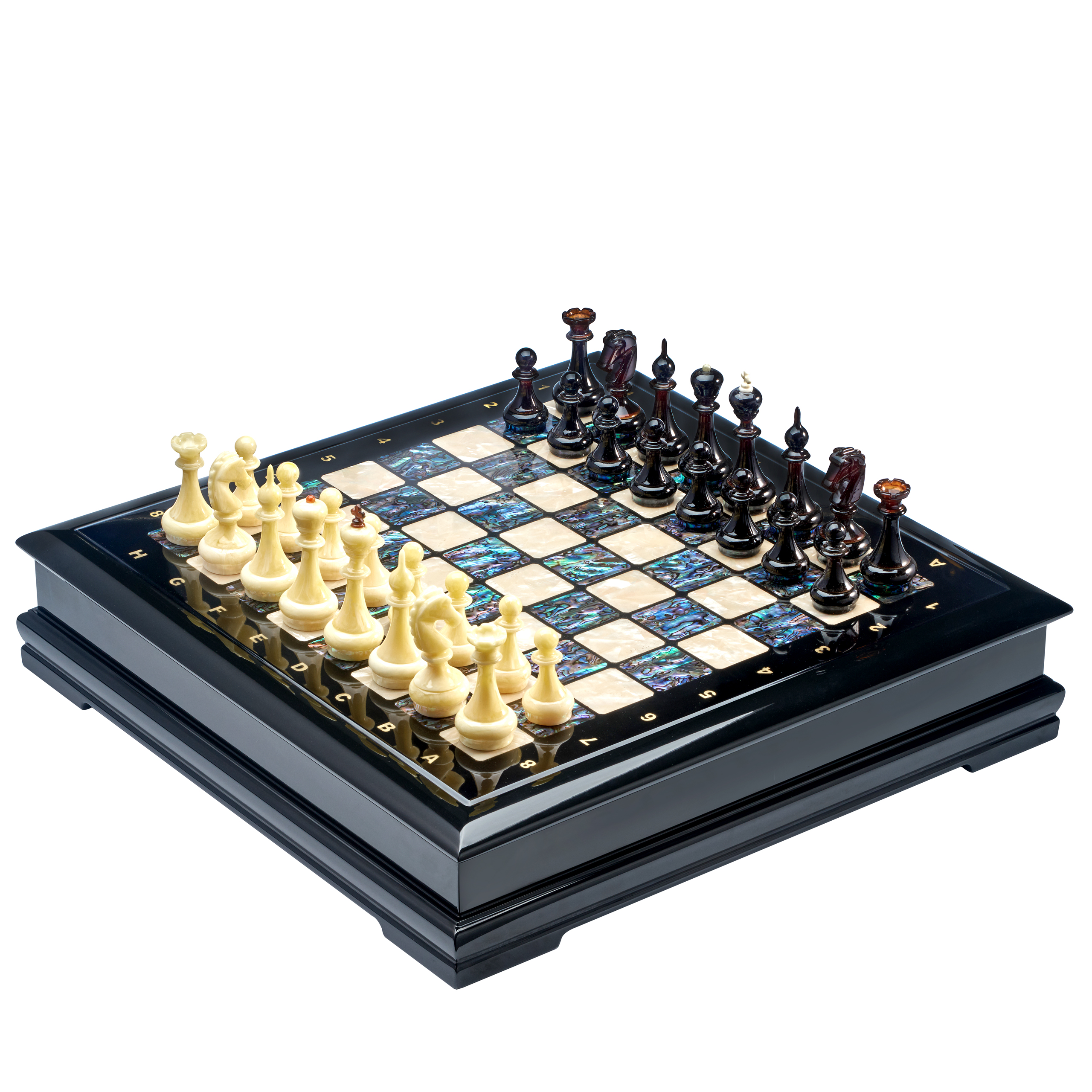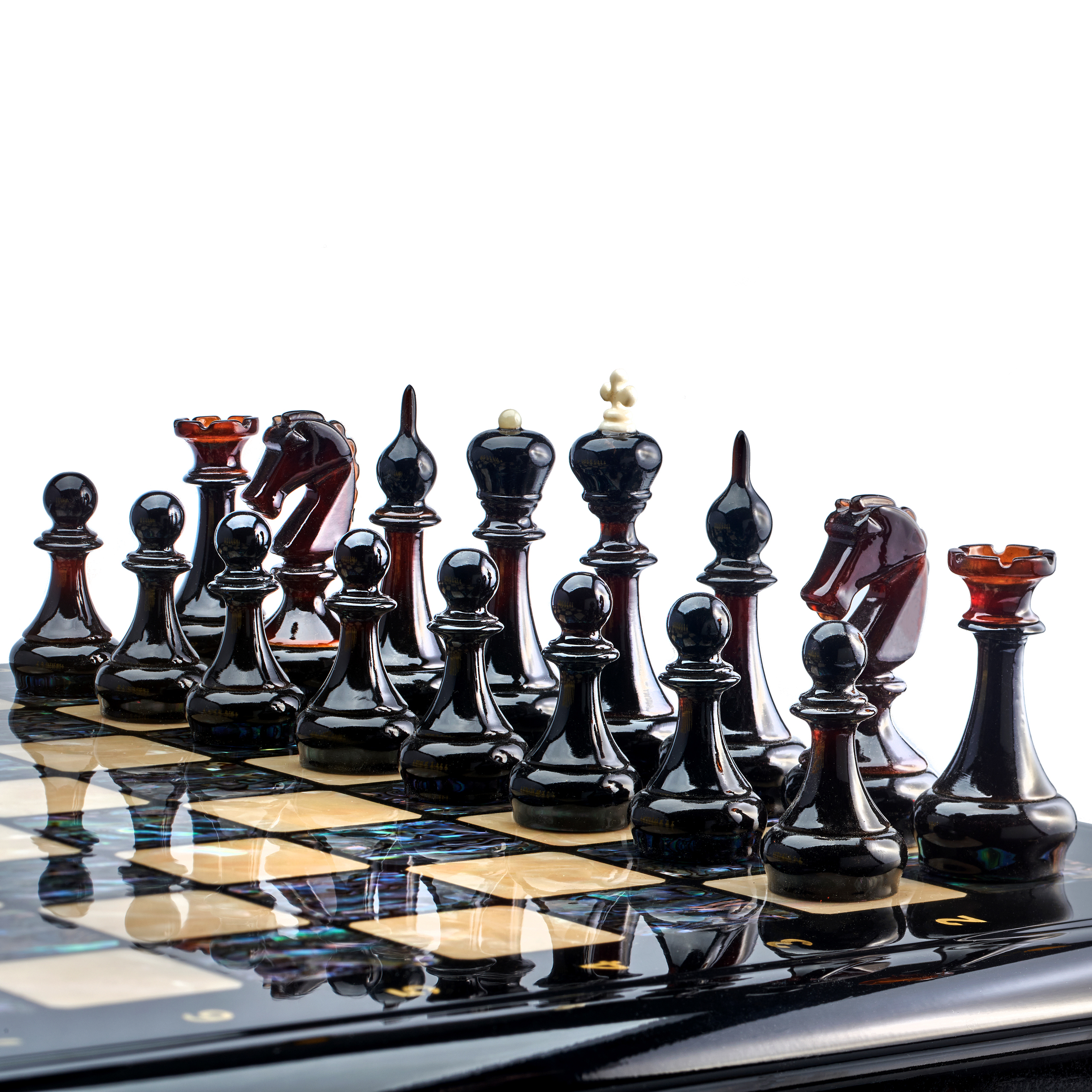 Шахматы с перламутром и фигурами из янтаря 45х45 см