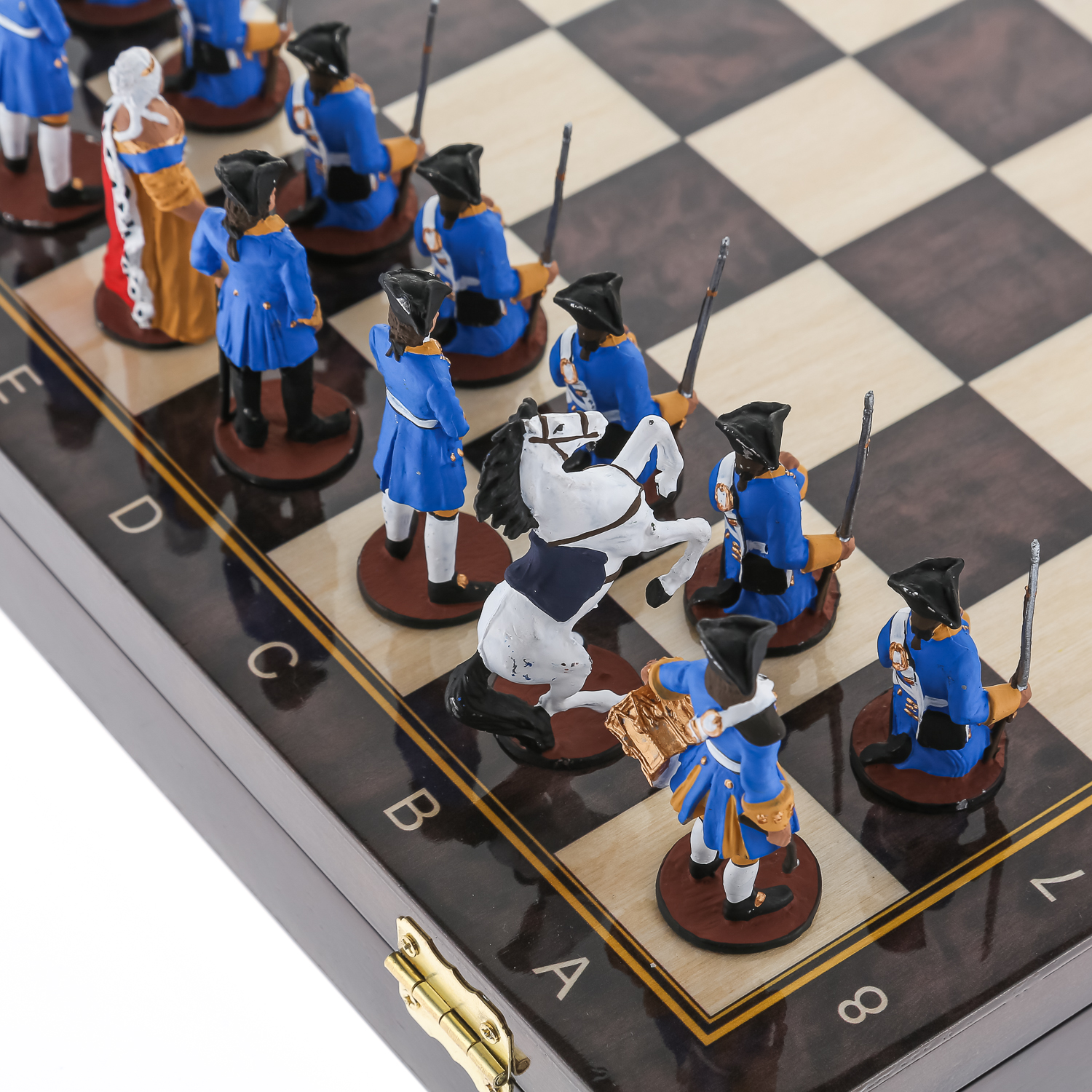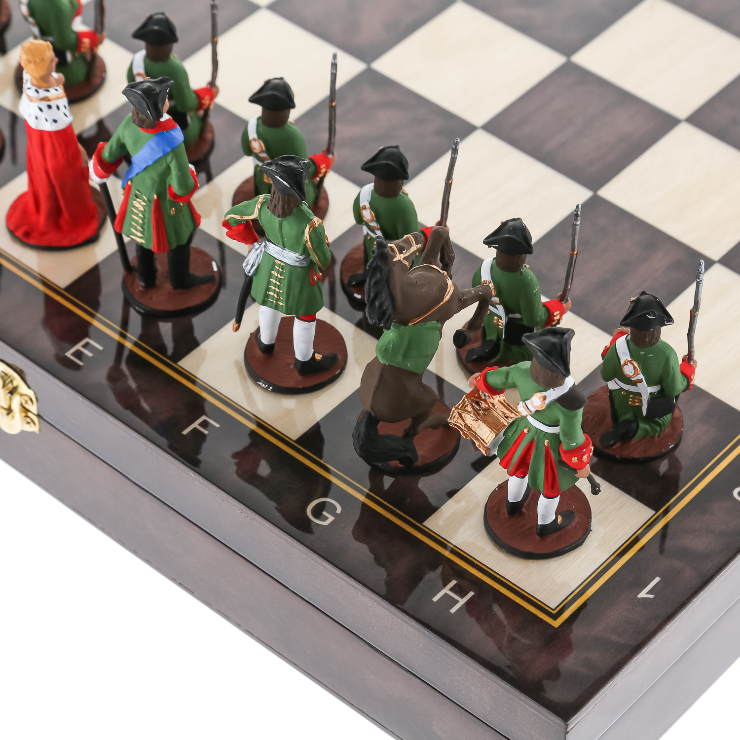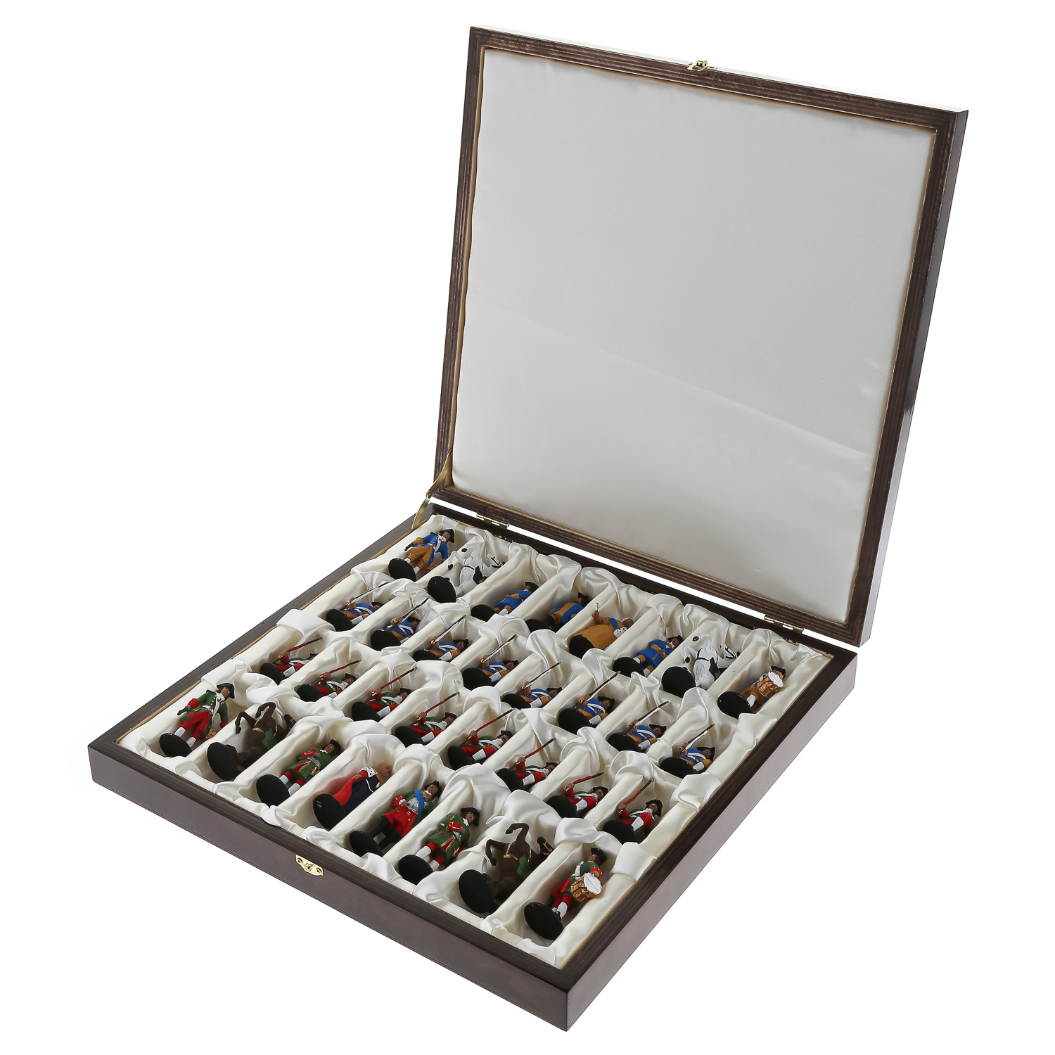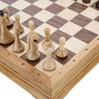 Деревянный шахматный ларец с оловянными фигурами станет отличным подарком для умного и образованного человека. Внутри подарочных шахмат установлен ложемент с атлассной тканью, каждая фигурка ложится в свою ячейку. Такие эксклюзивные деревянные шахматы непременно станут ярким акцентом Вашего интерьера.