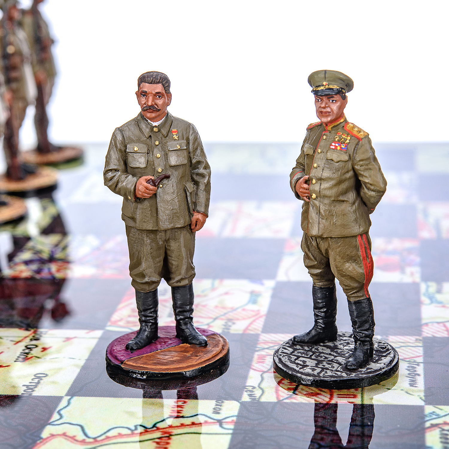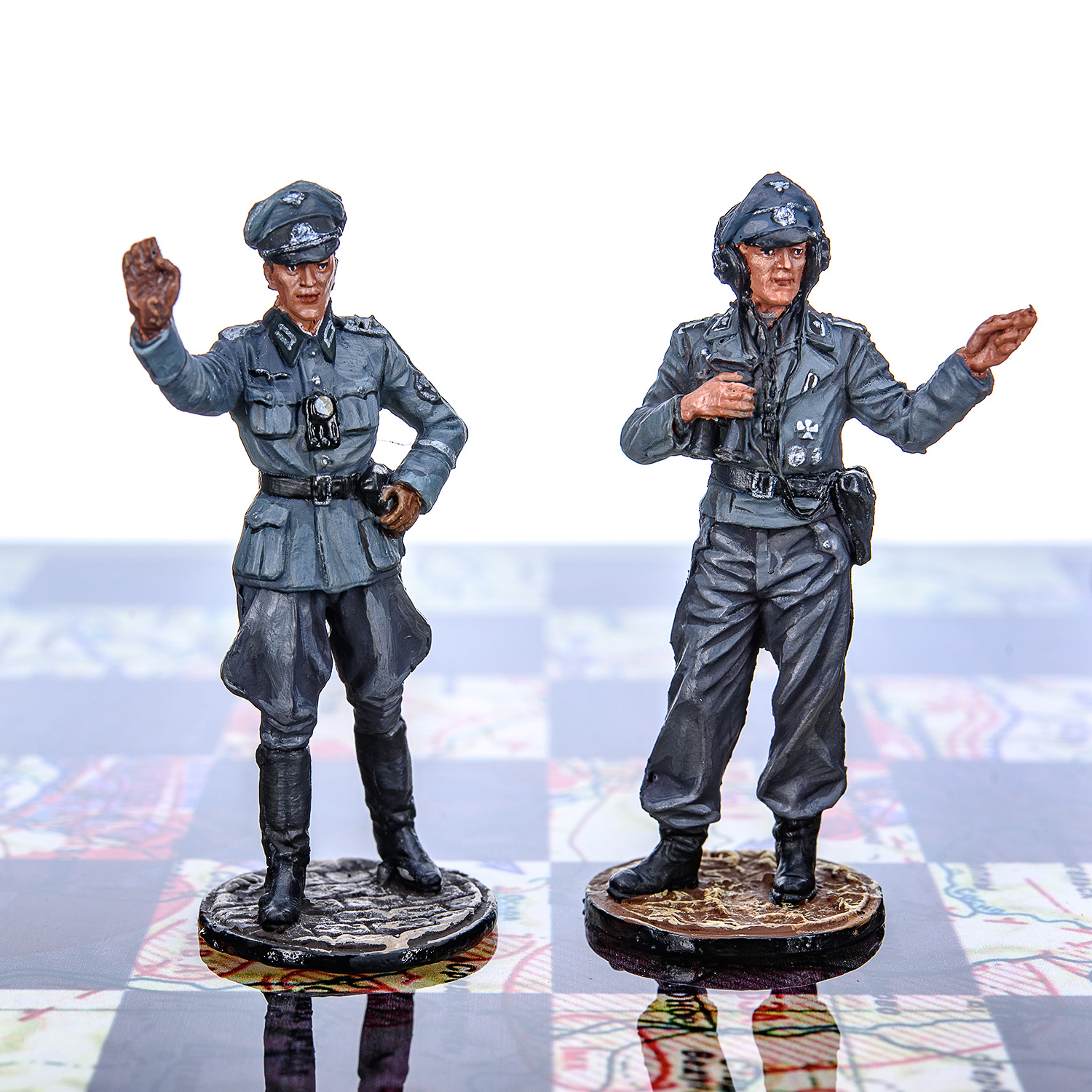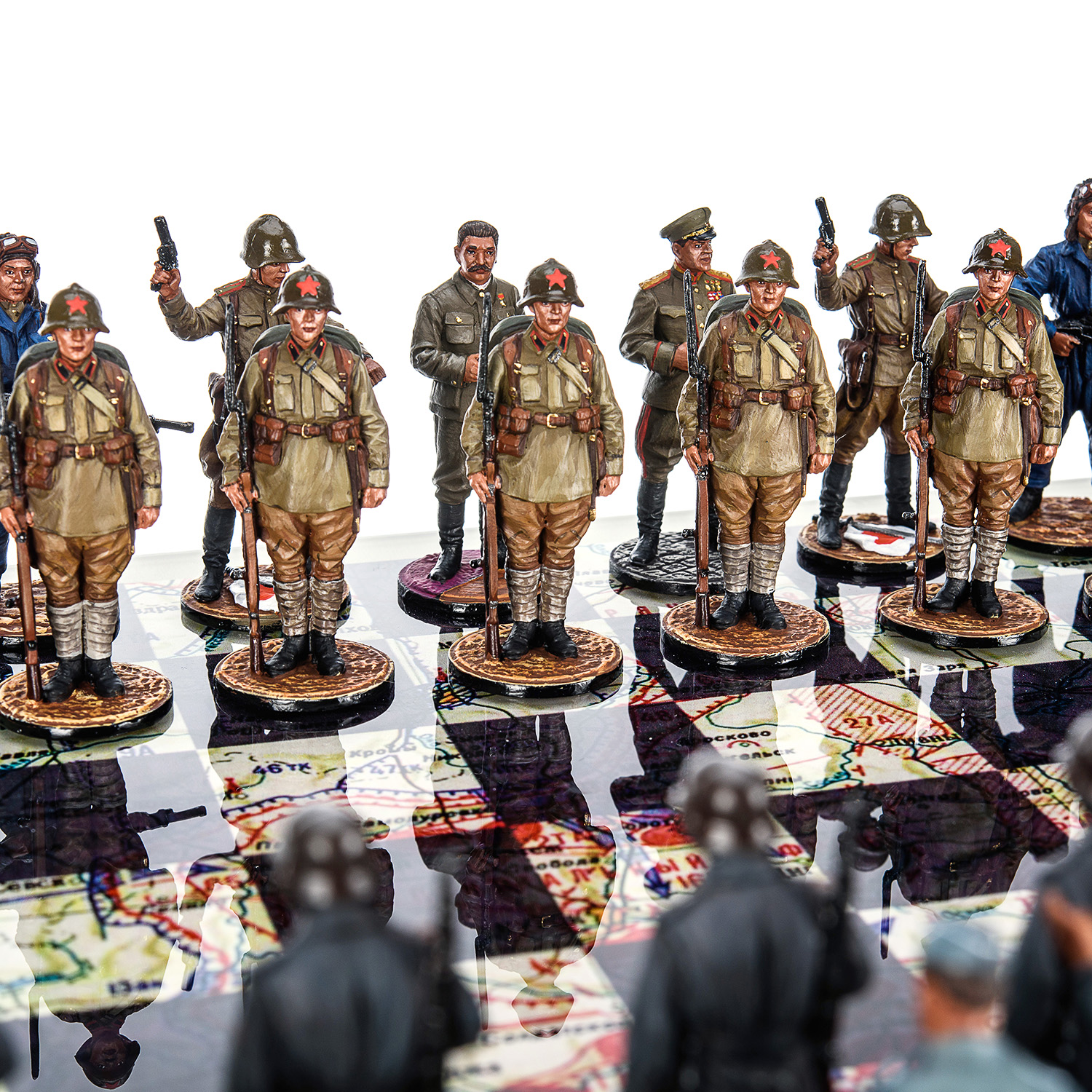 Шахматы коллекционные с оловянными фигурами на стеклянном игровом поле "Вторая Мировая война".