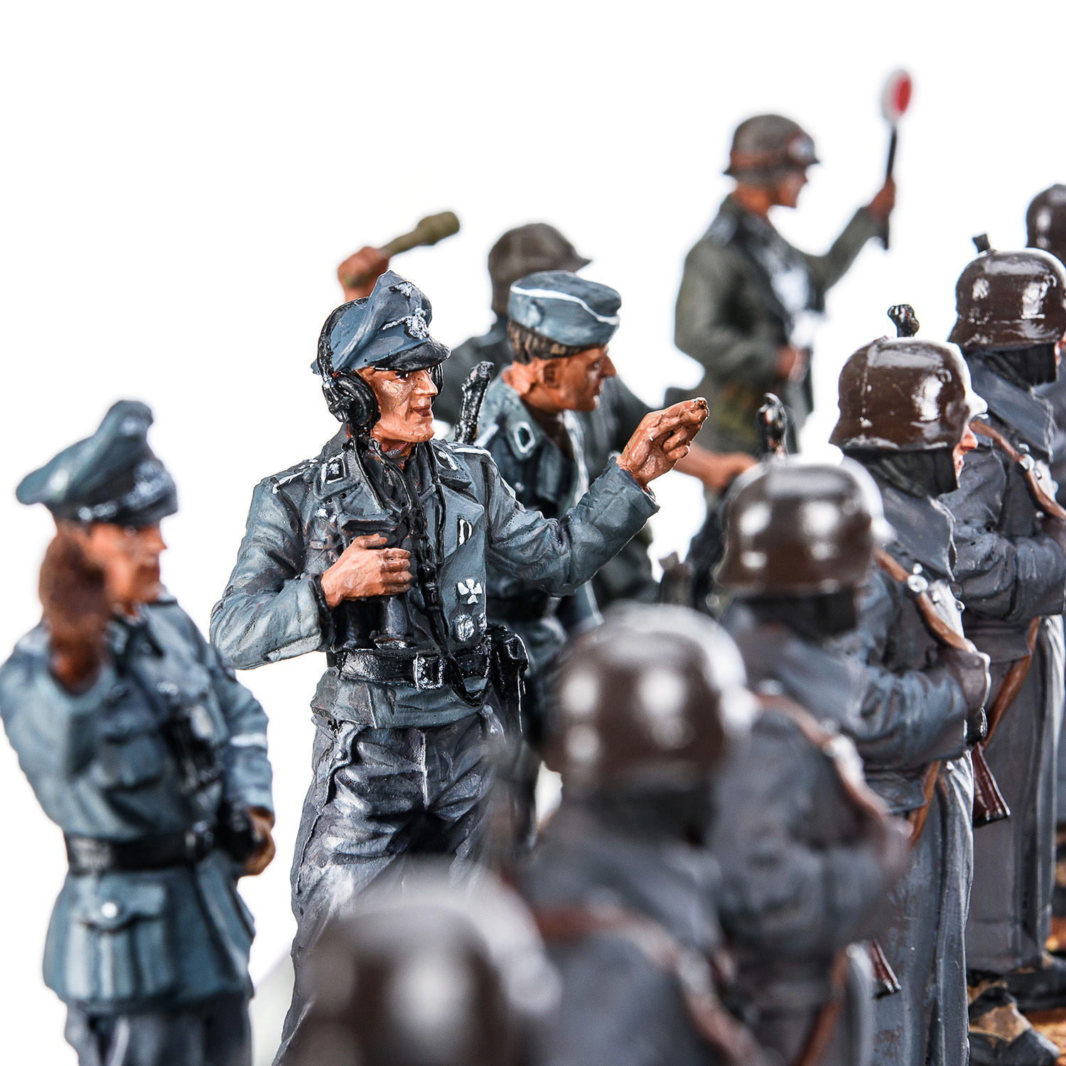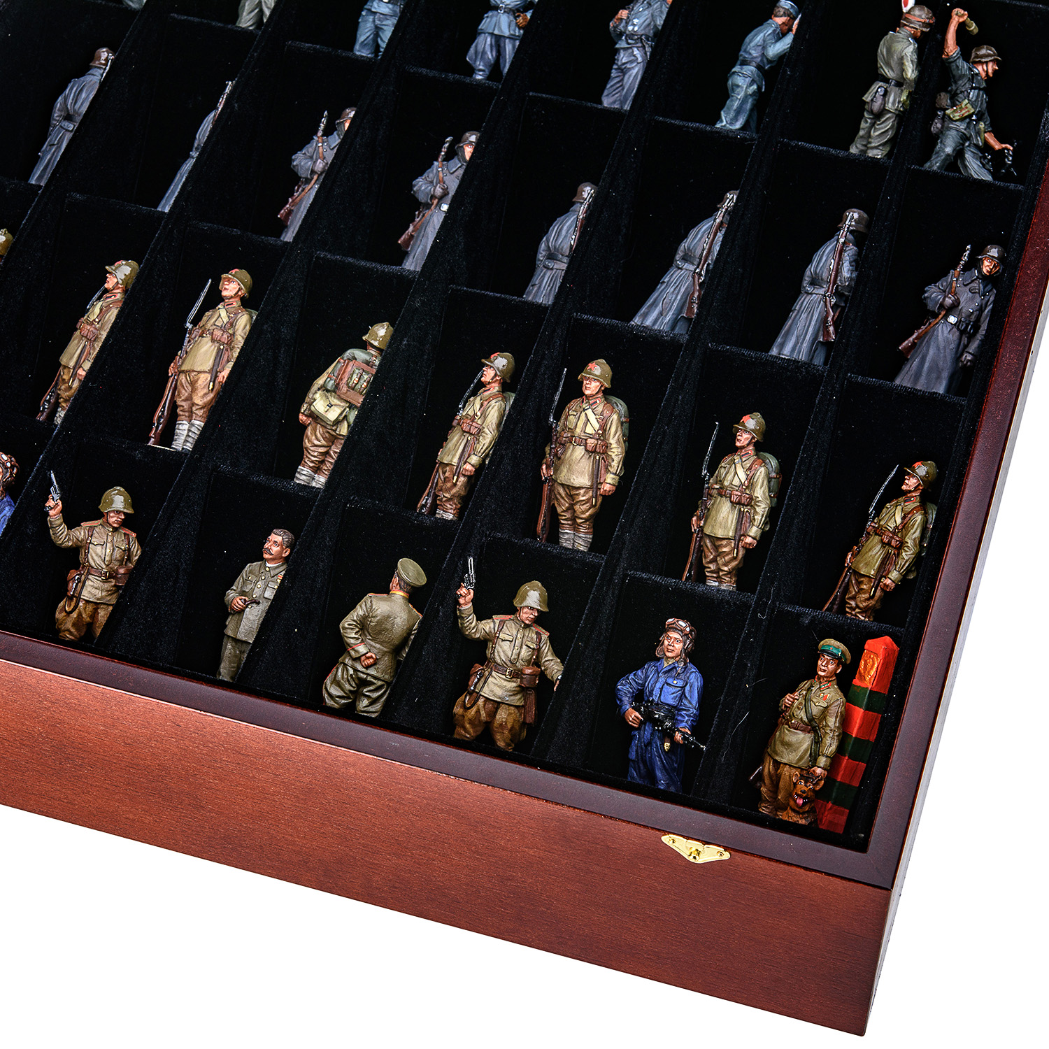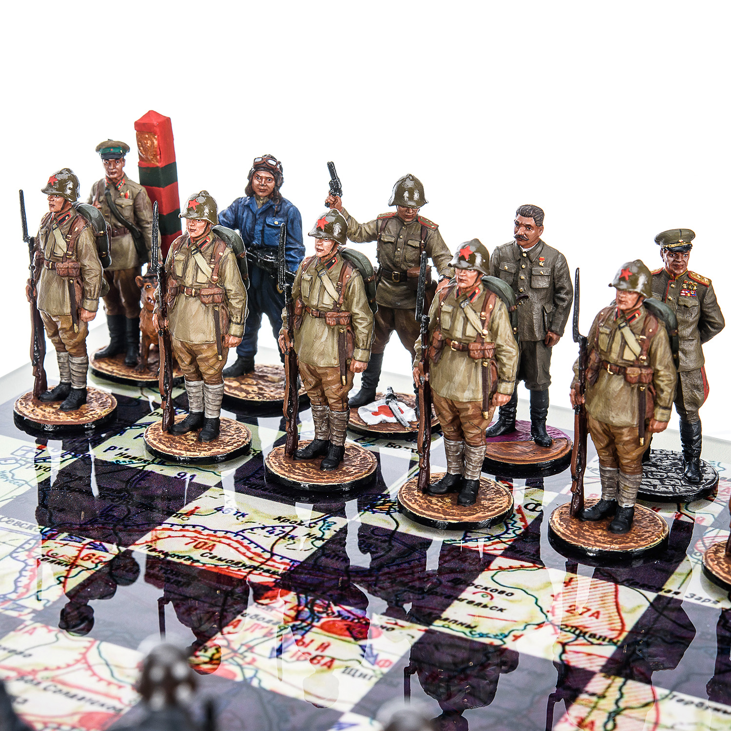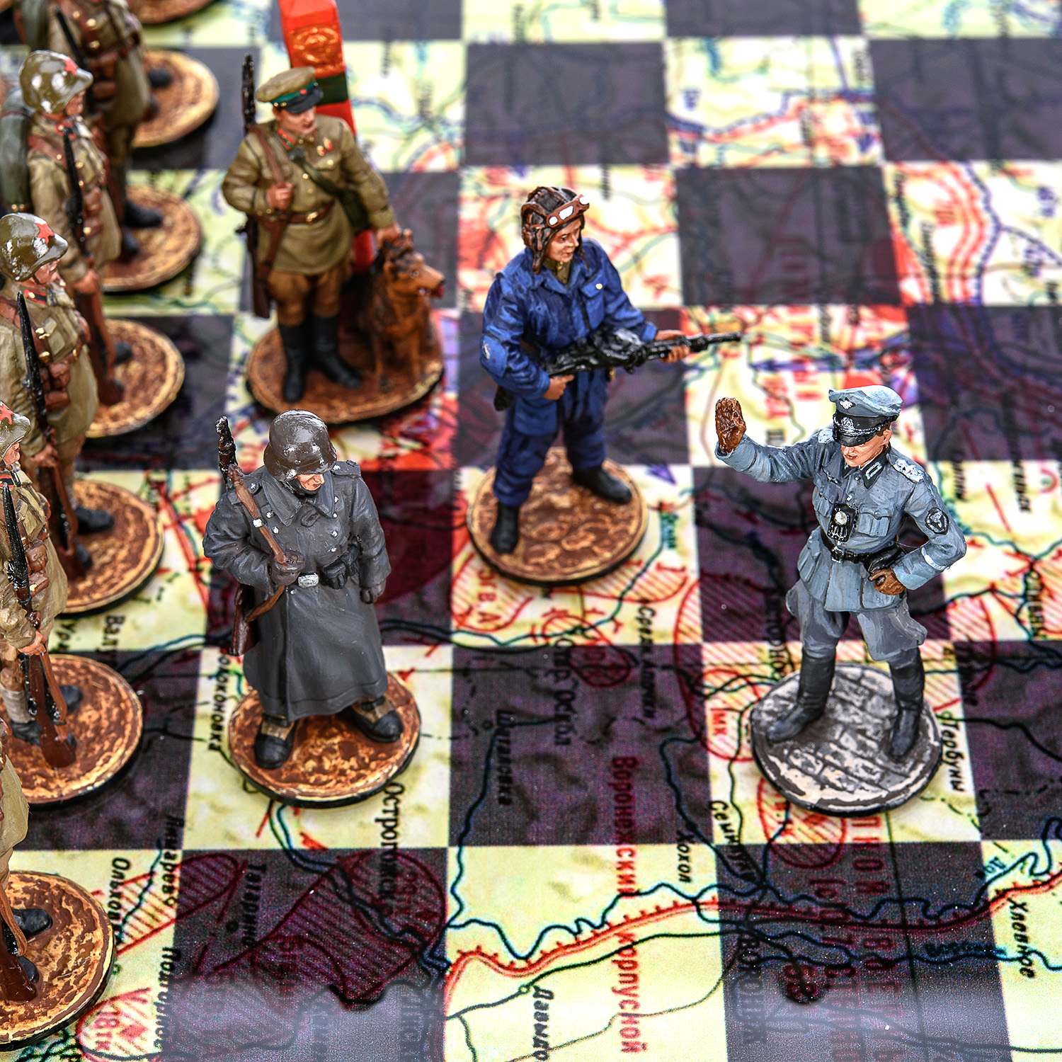 Шахматы коллекционные с оловянными фигурами на стеклянном игровом поле "Вторая Мировая война".