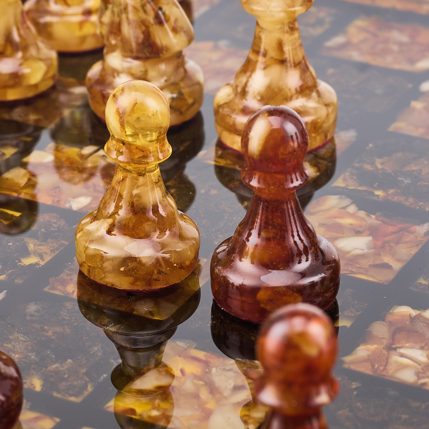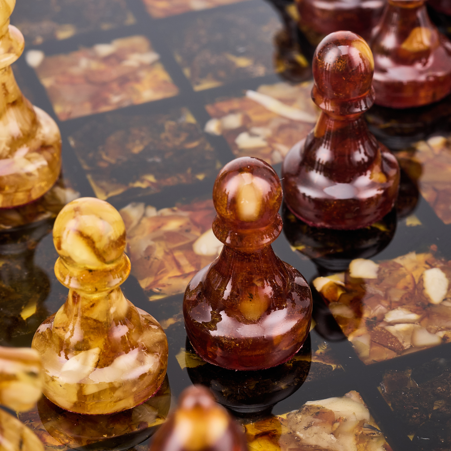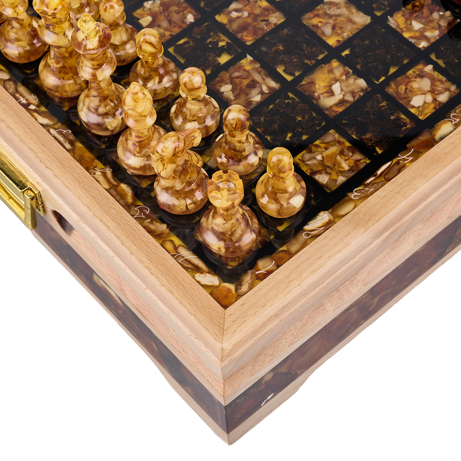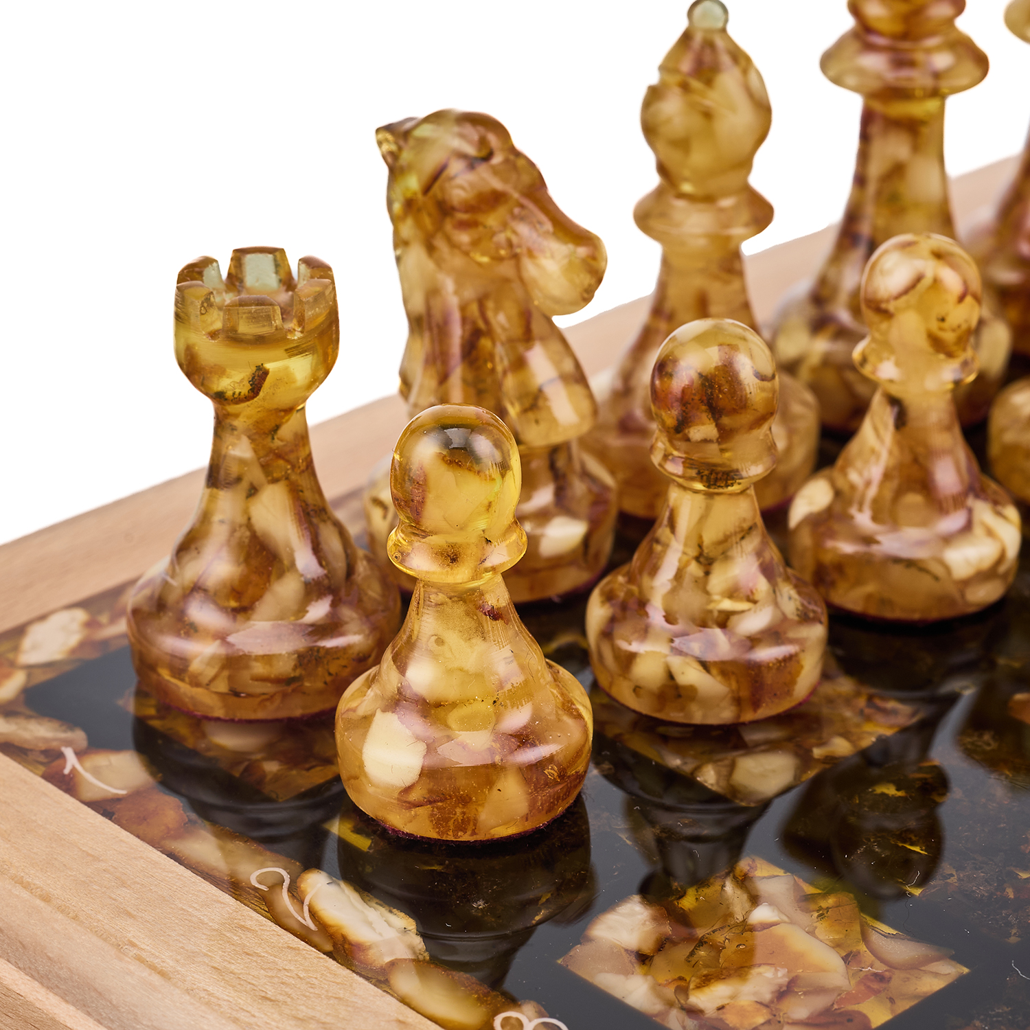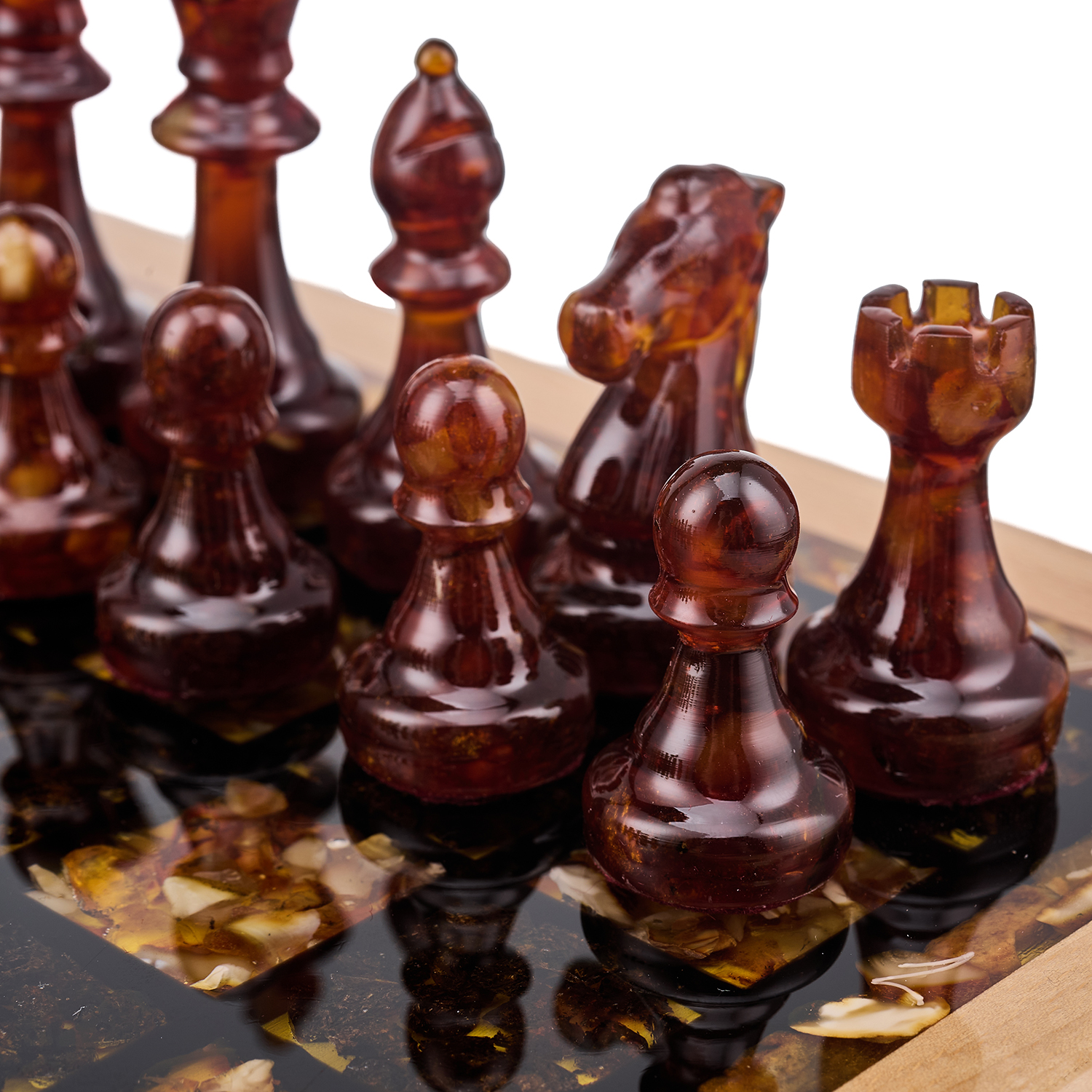 Материалы: дуб, ясень, янтарь, полиэфирная смола.