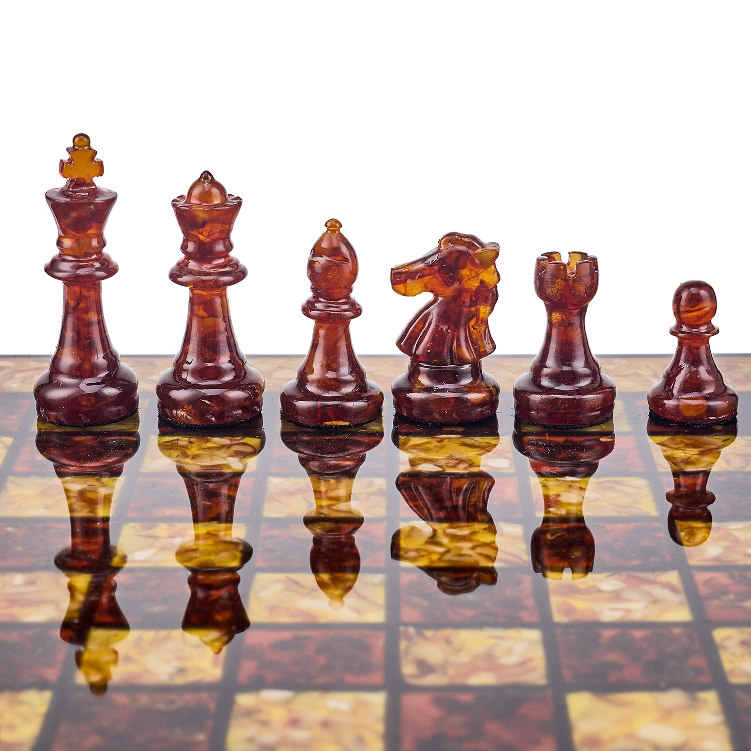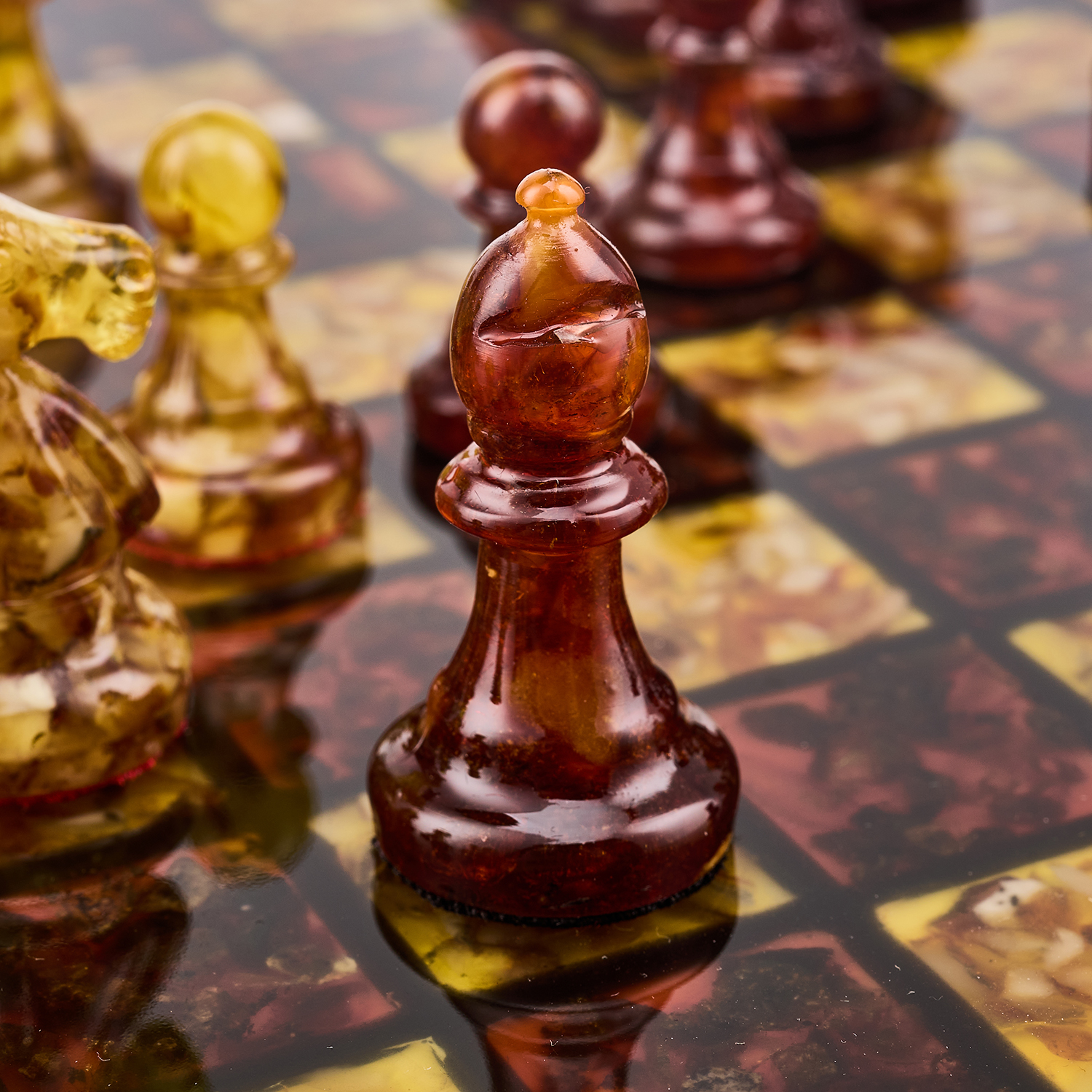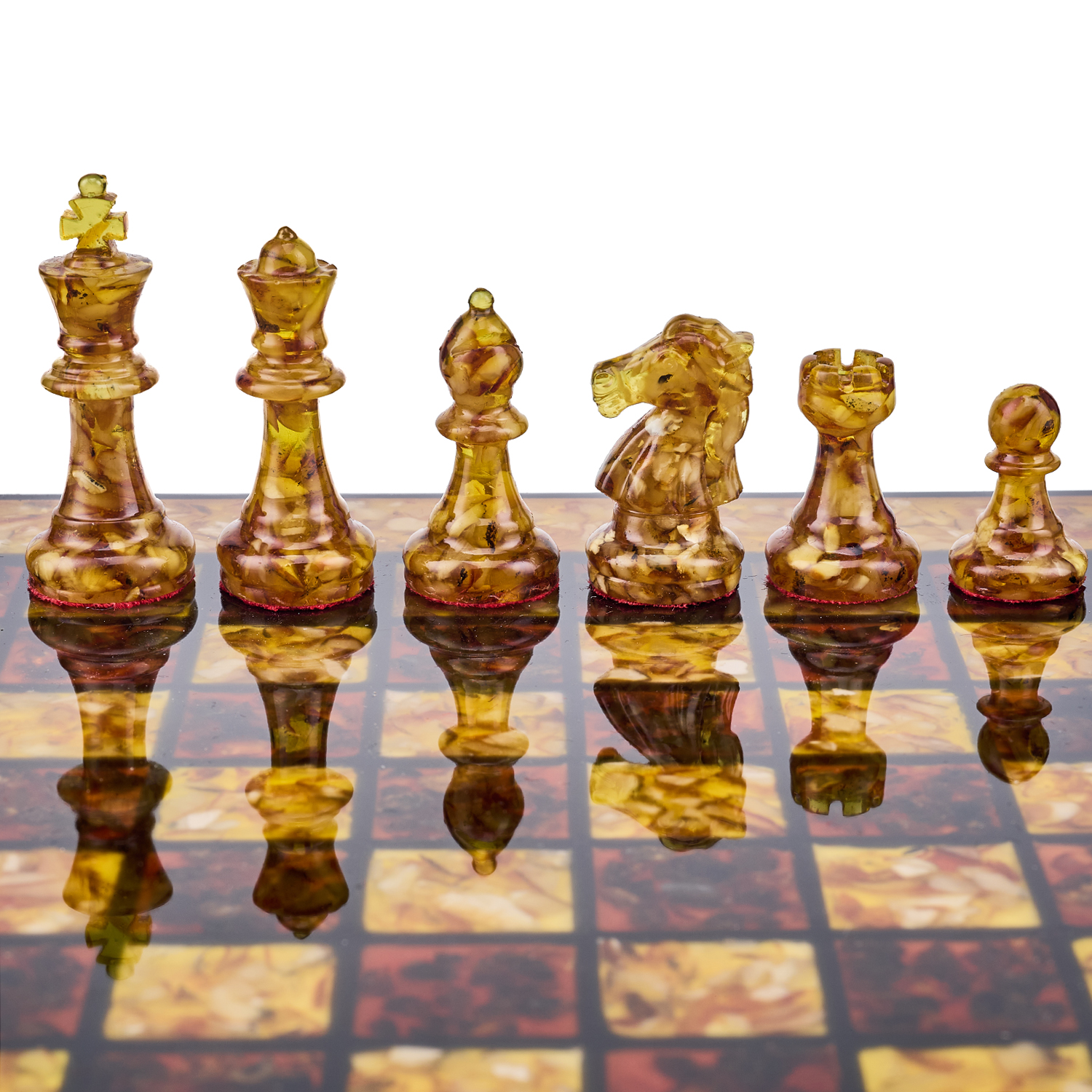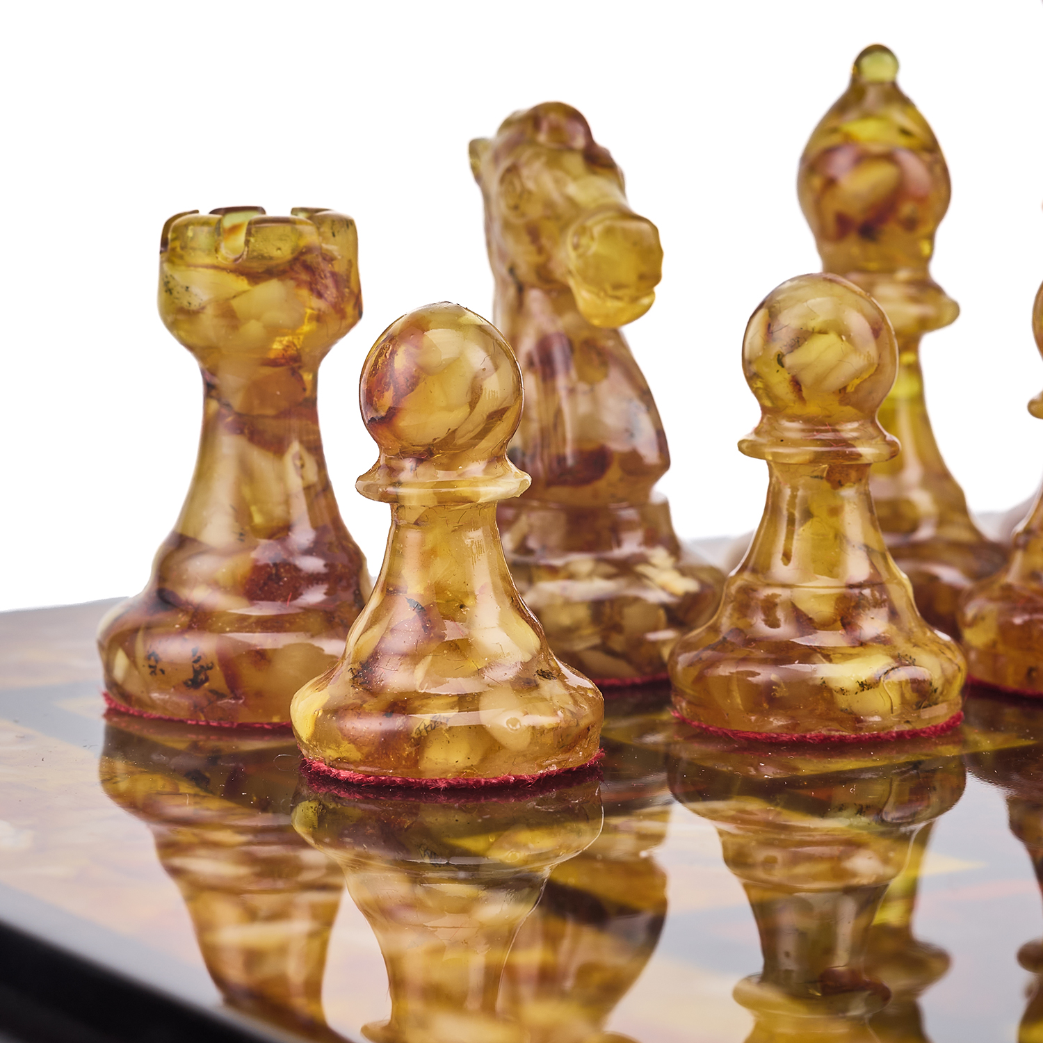 Шахматы с инкрустацией и фигурами из янтаря.