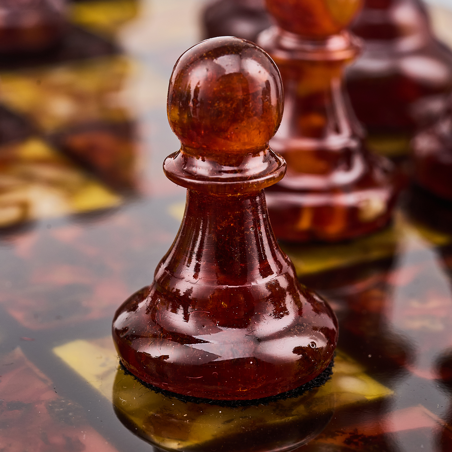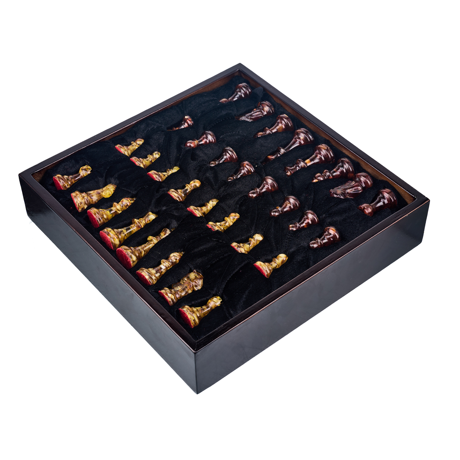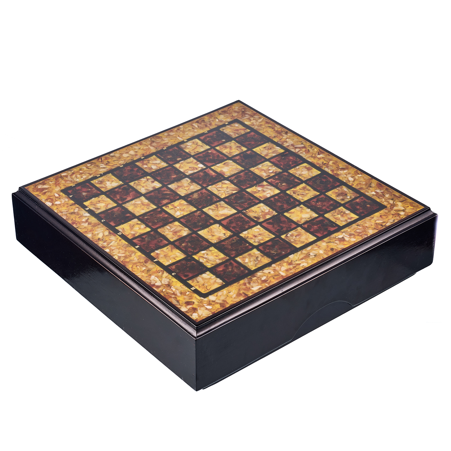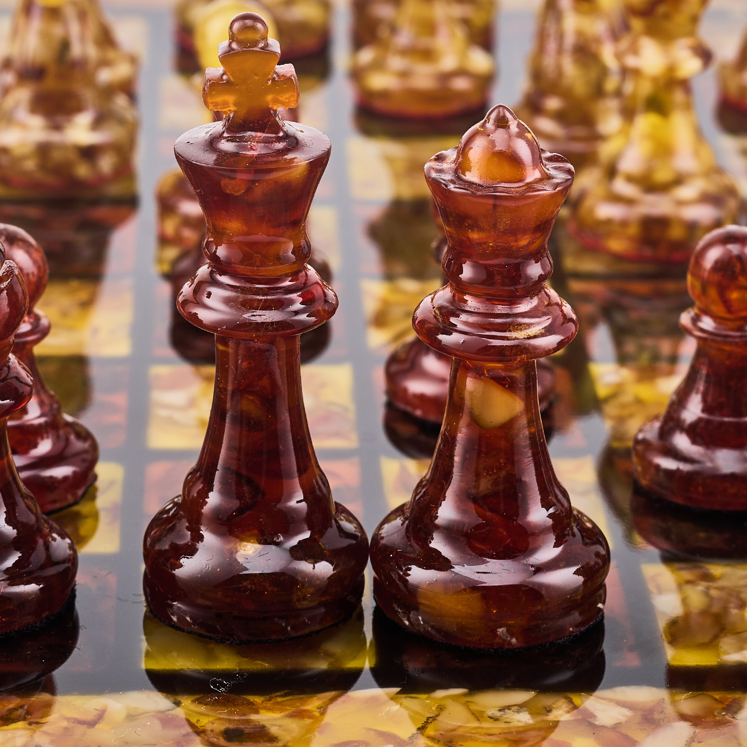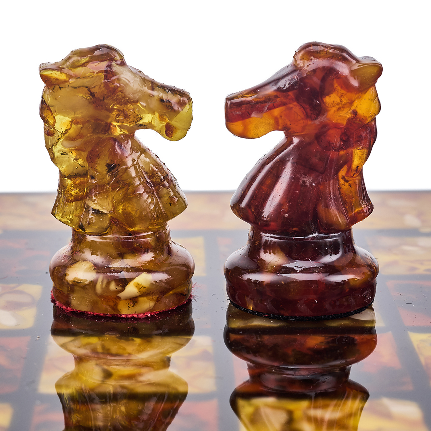 Шахматы с инкрустацией и фигурами из янтаря.