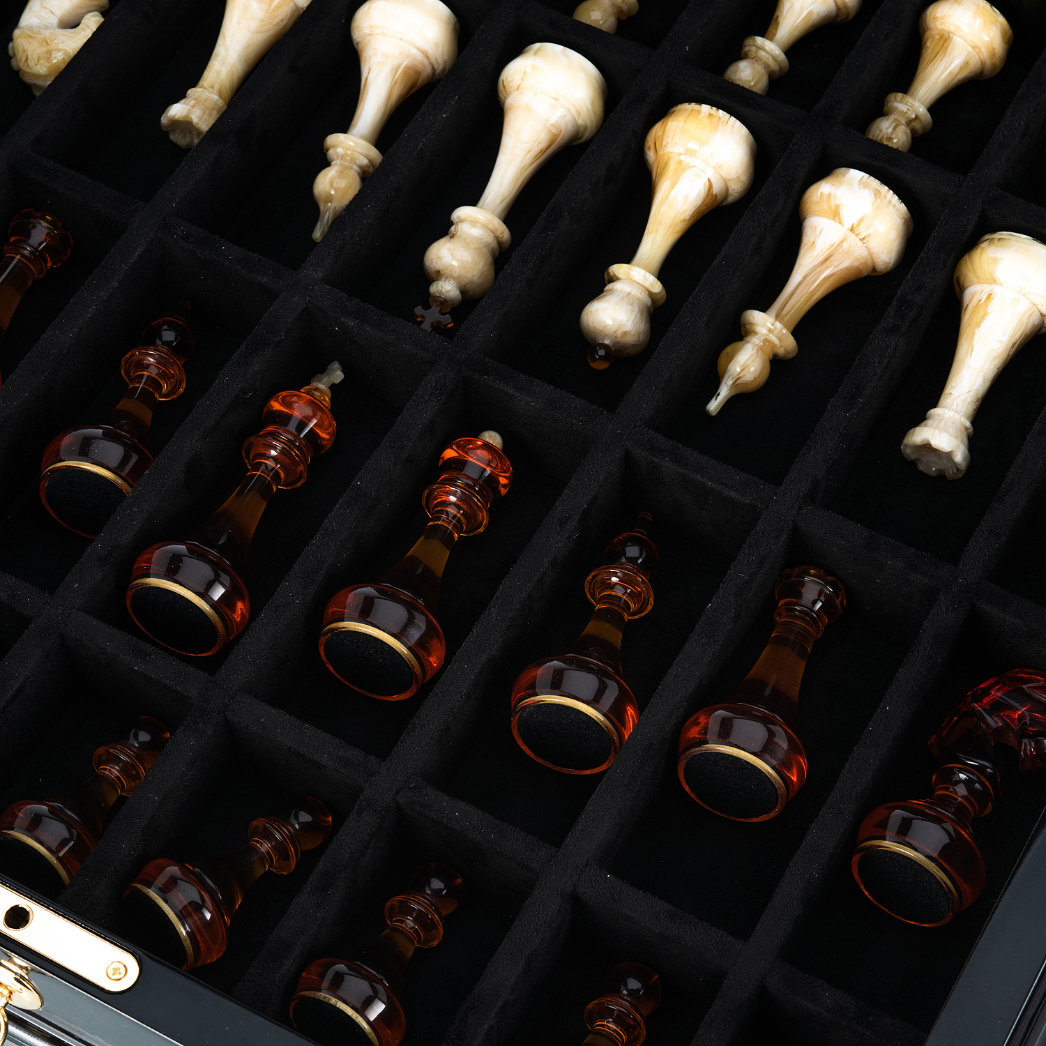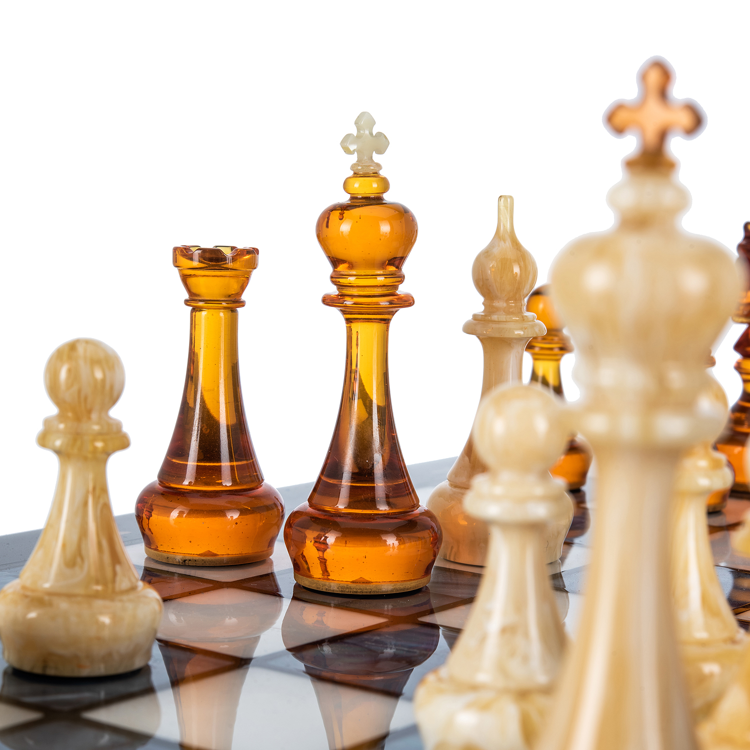 Наши эксклюзивные шахматы - это не просто потоковая продукция, а произведение искусства, в разработке которого мы учитываем не только внешнюю красоту, но и функциональность, а фигуры из драгоценного балтийского янтаря определенно добавляют дорогому шахматному набору элитарности, делая его неповторимым и элегантным.