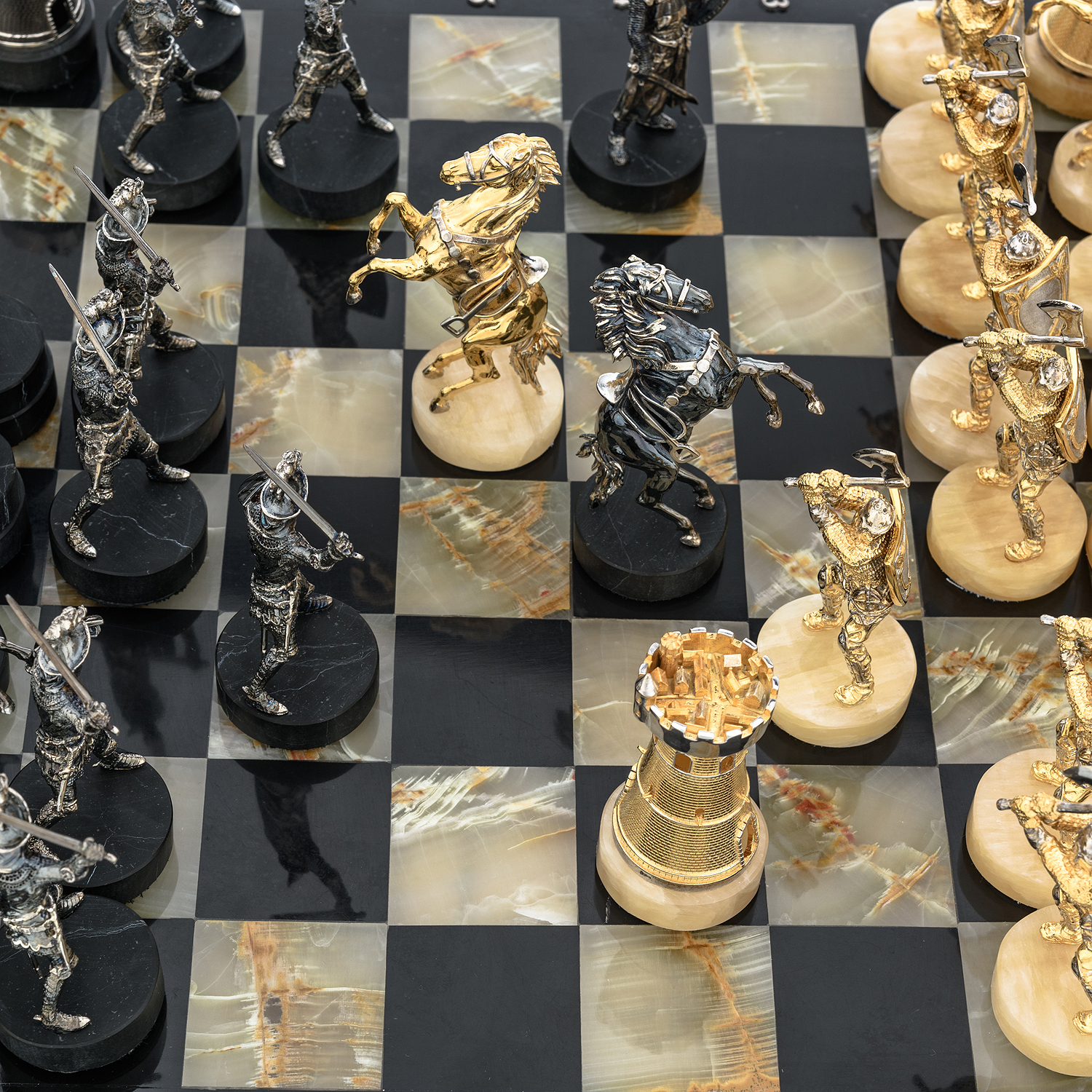 Материалы: оникс, долерит, черный и белый родий, серебро 925*, золочение 750*.