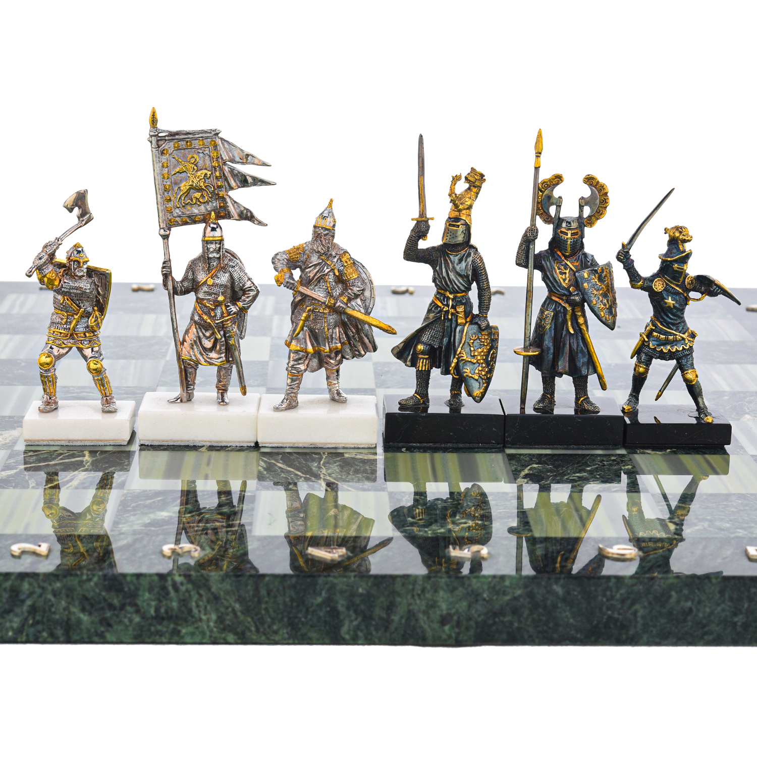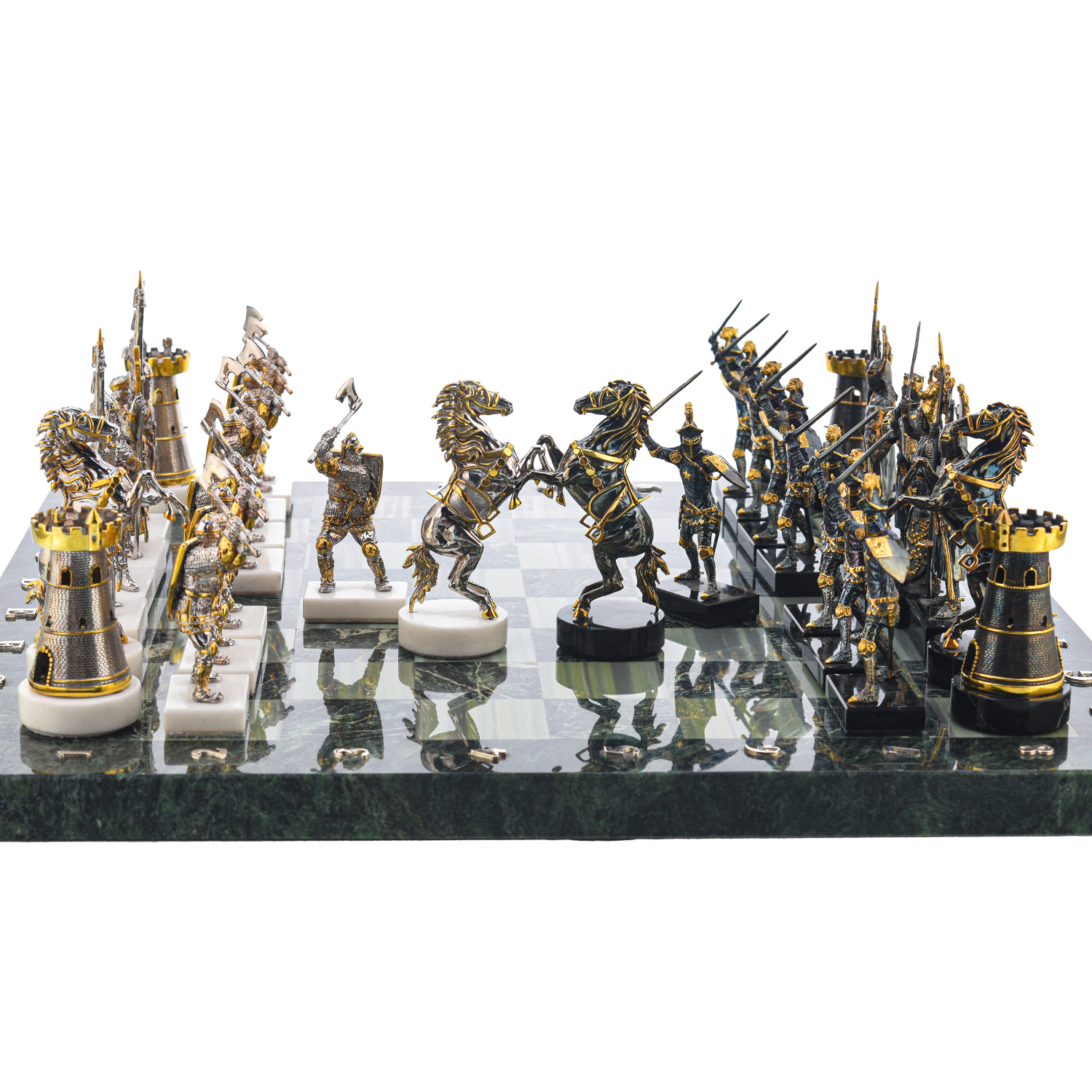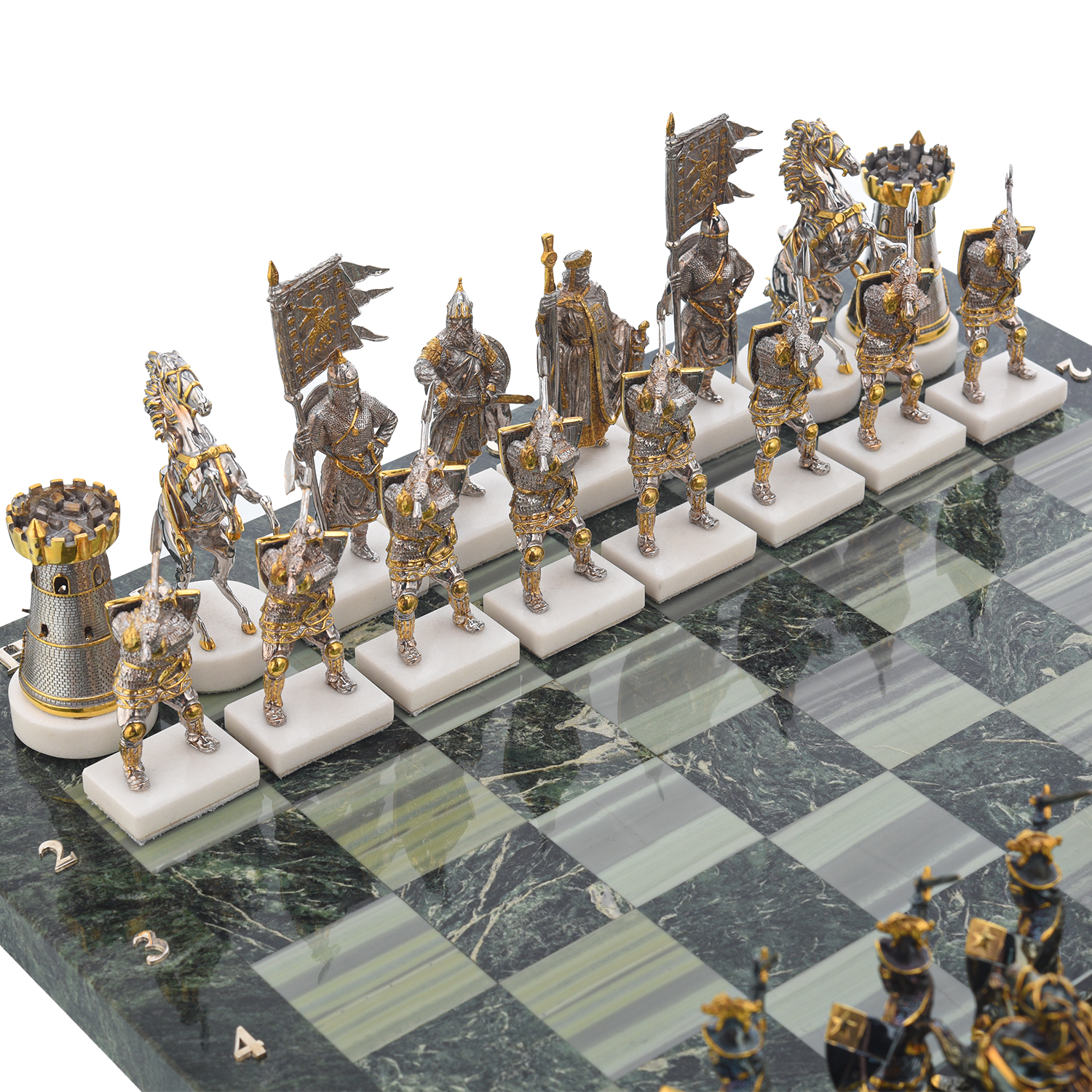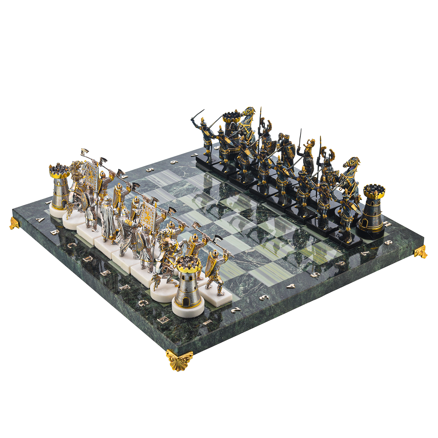 Шахматы с полем из камня и фигурами из серебра "Сражение".