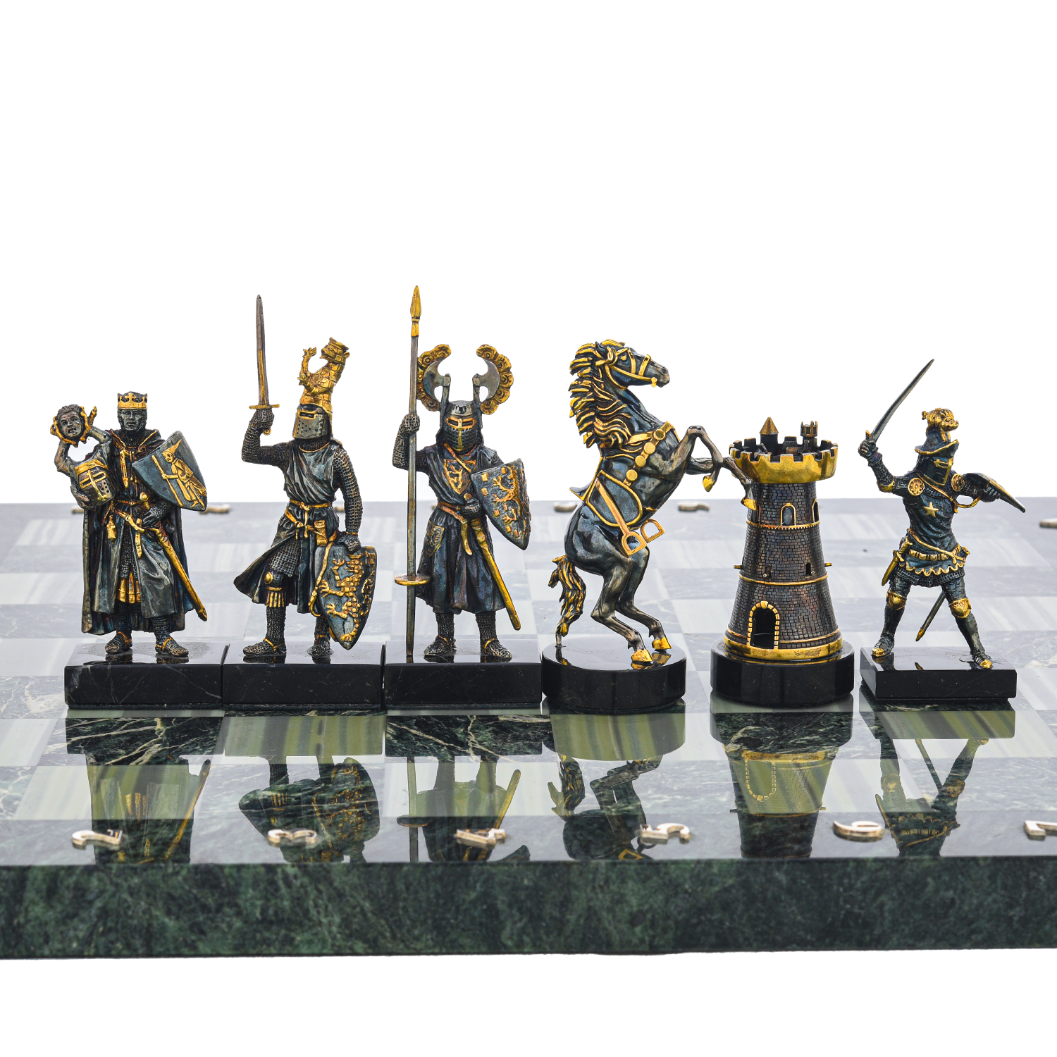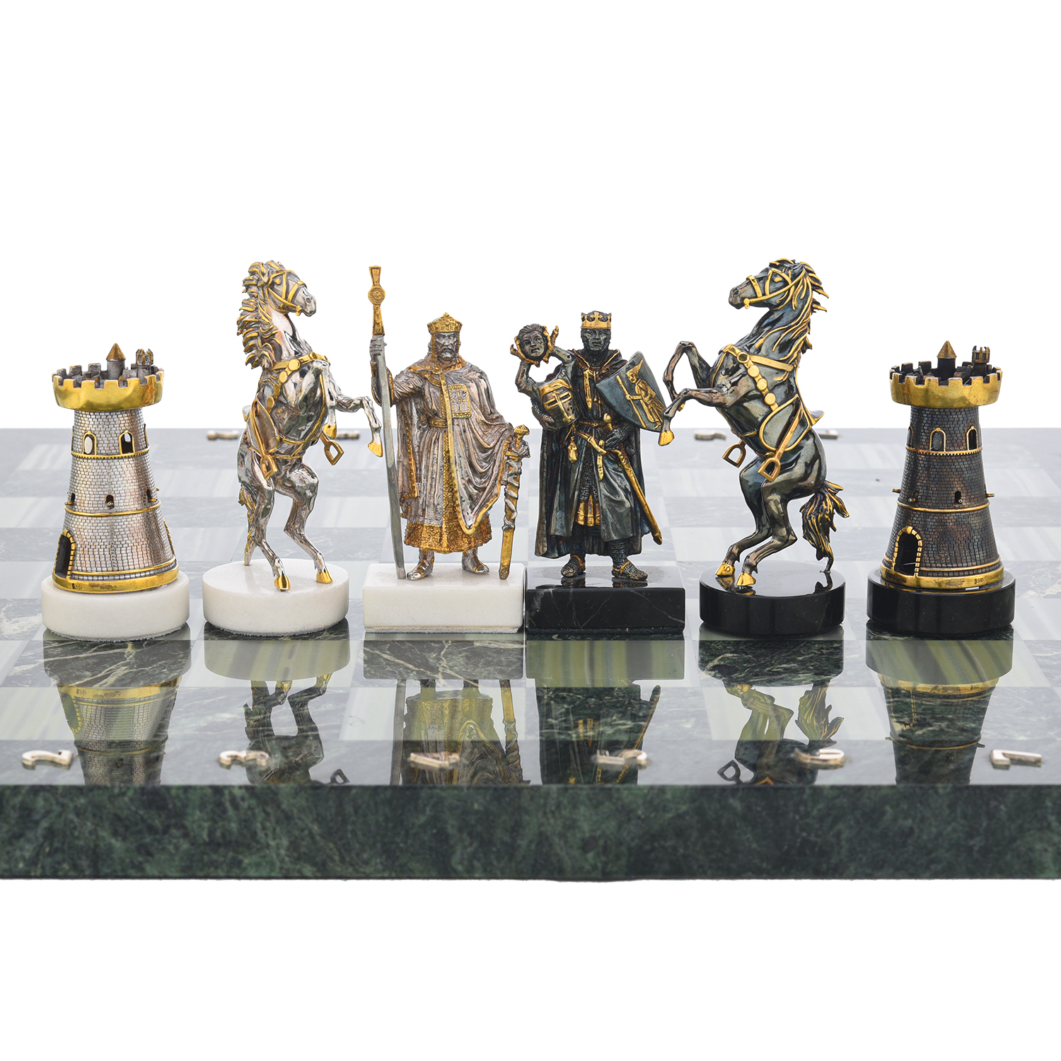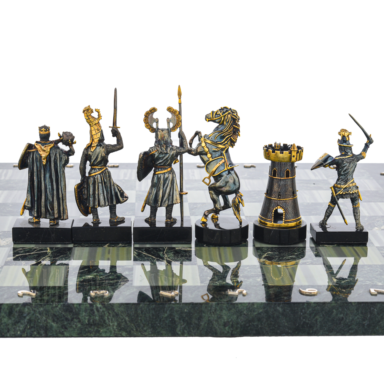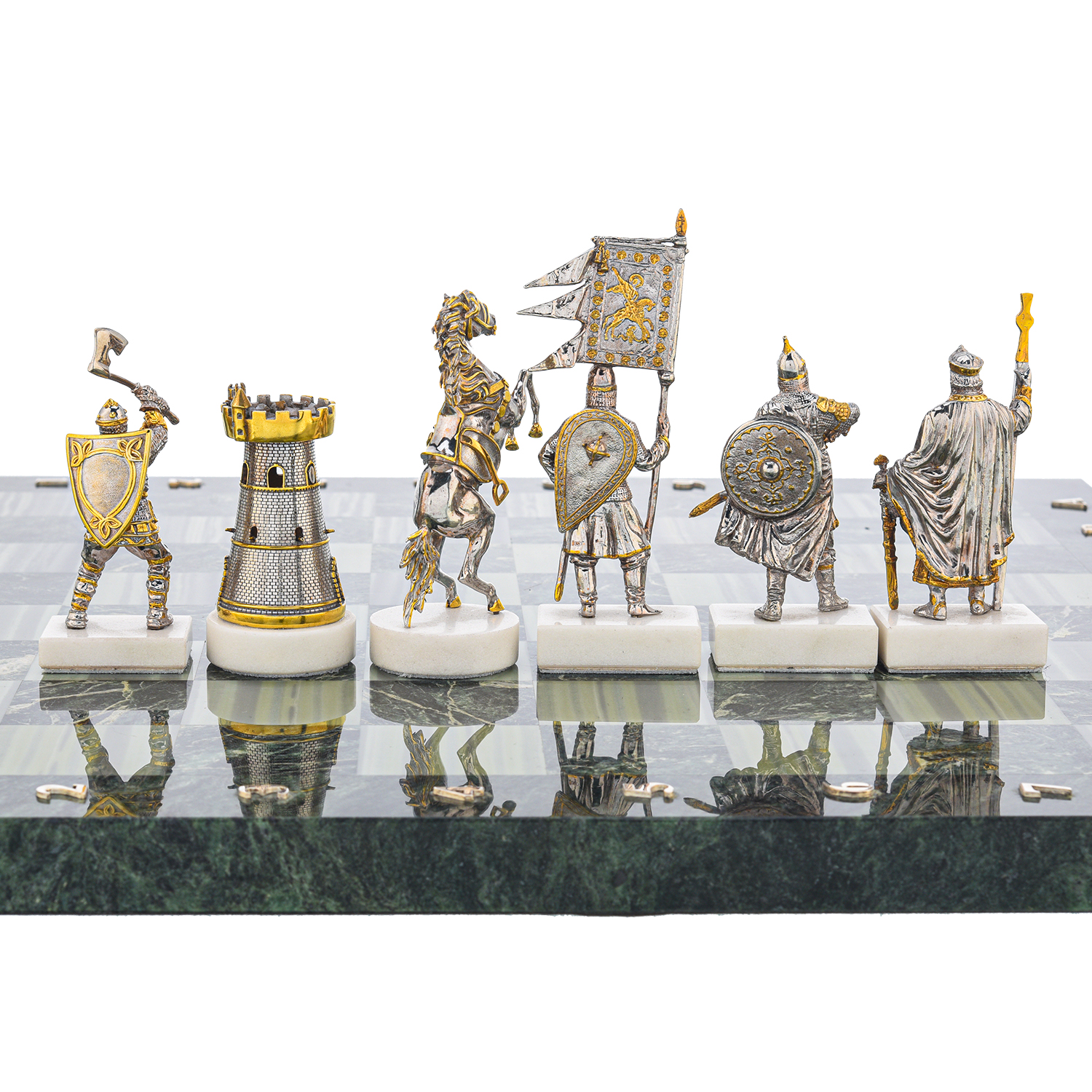 Шахматы с полем из камня и фигурами из серебра "Сражение".