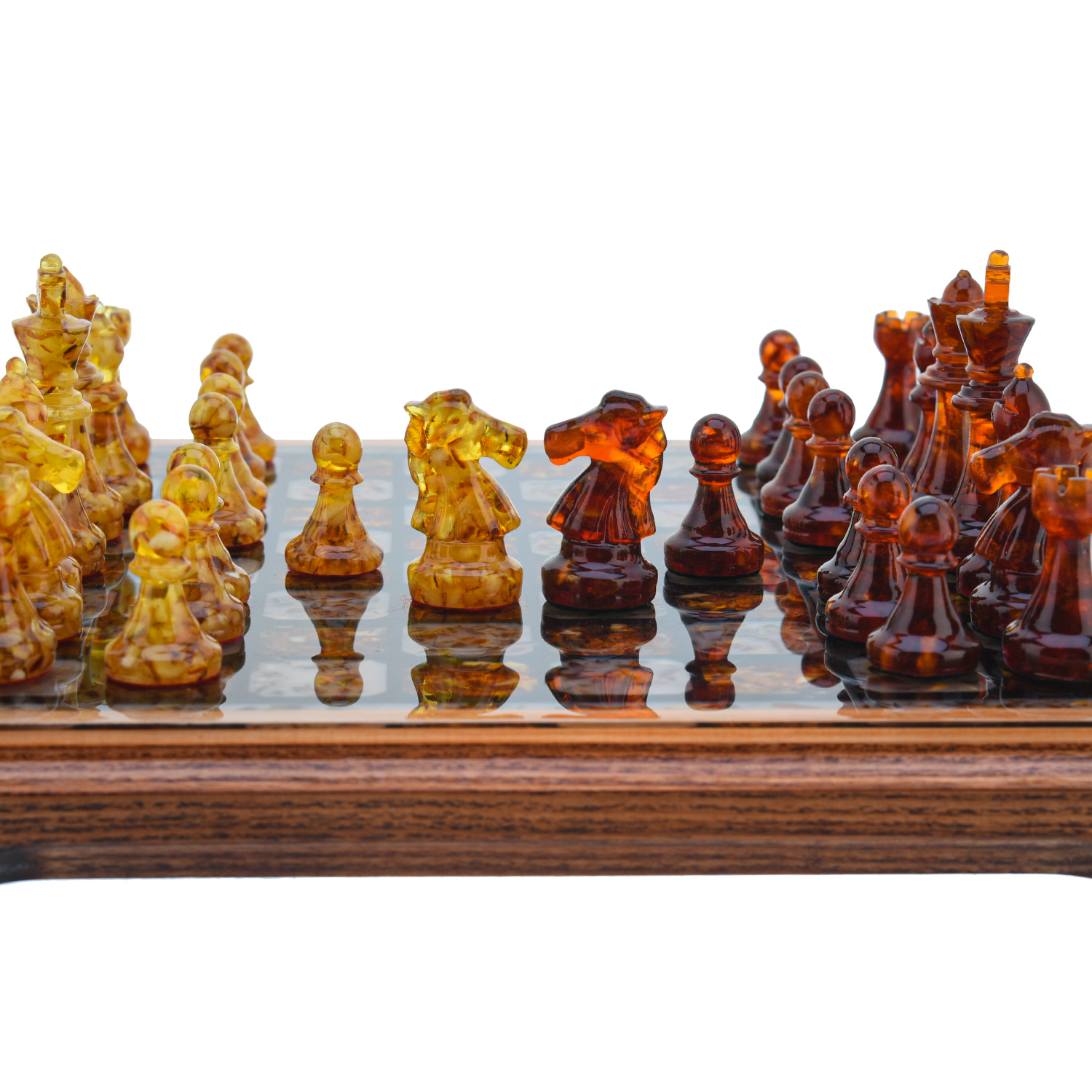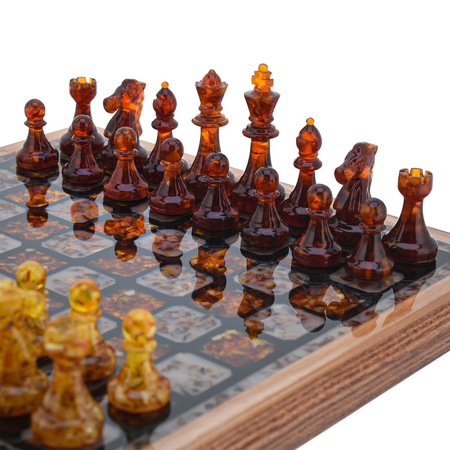 Наши эксклюзивные шахматы - это не просто потоковая продукция, а произведение искусства, в разработке которого мы учитываем не только внешнюю красоту, но и функциональность, а фигуры из драгоценного балтийского янтаря определенно добавляют дорогому шахматному набору элитарности, делая его неповторимым и элегантным.
