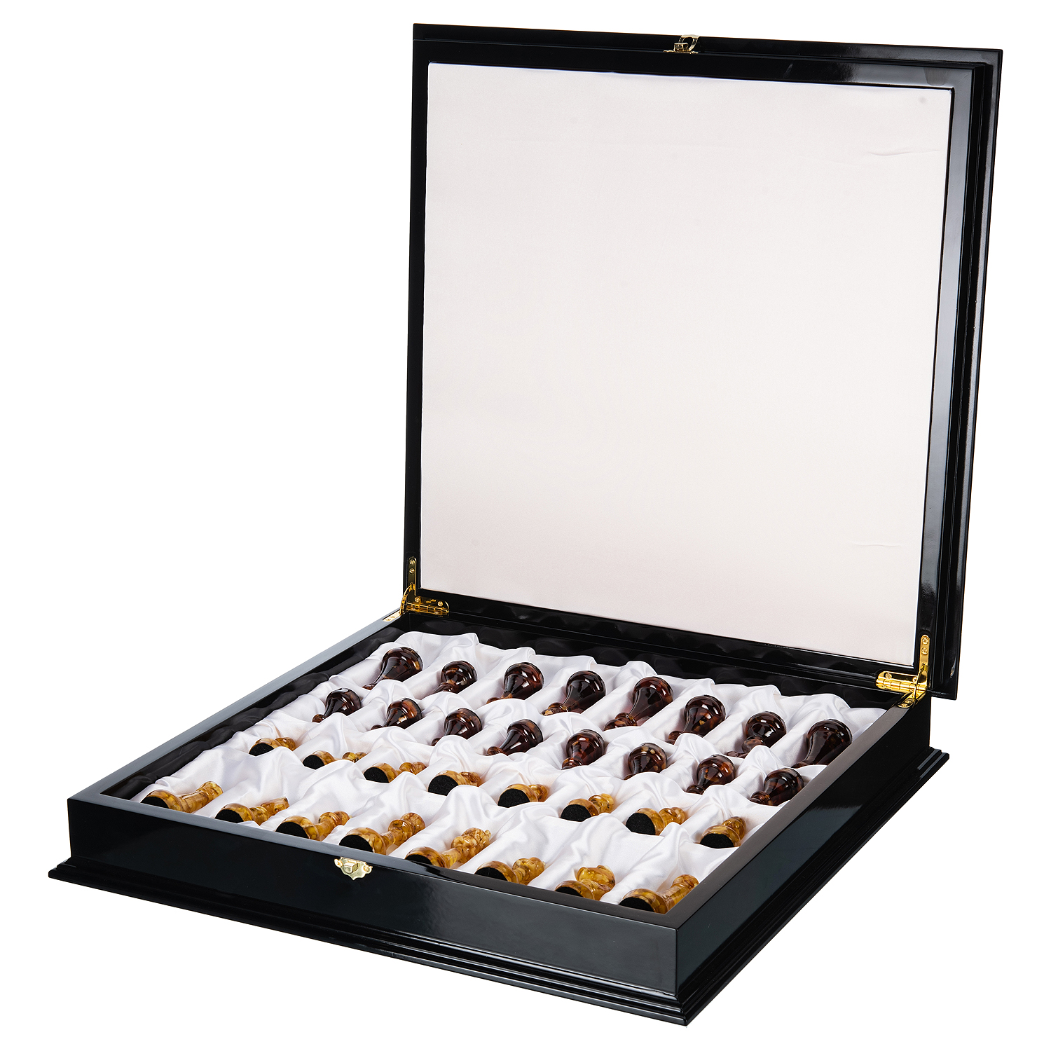 Наши эксклюзивные шахматы - это не просто потоковая продукция, а произведение искусства, в разработке которого мы учитываем не только внешнюю красоту, но и функциональность, а фигуры из драгоценного балтийского янтаря определенно добавляют дорогому шахматному набору элитарности, делая его неповторимым и элегантным.