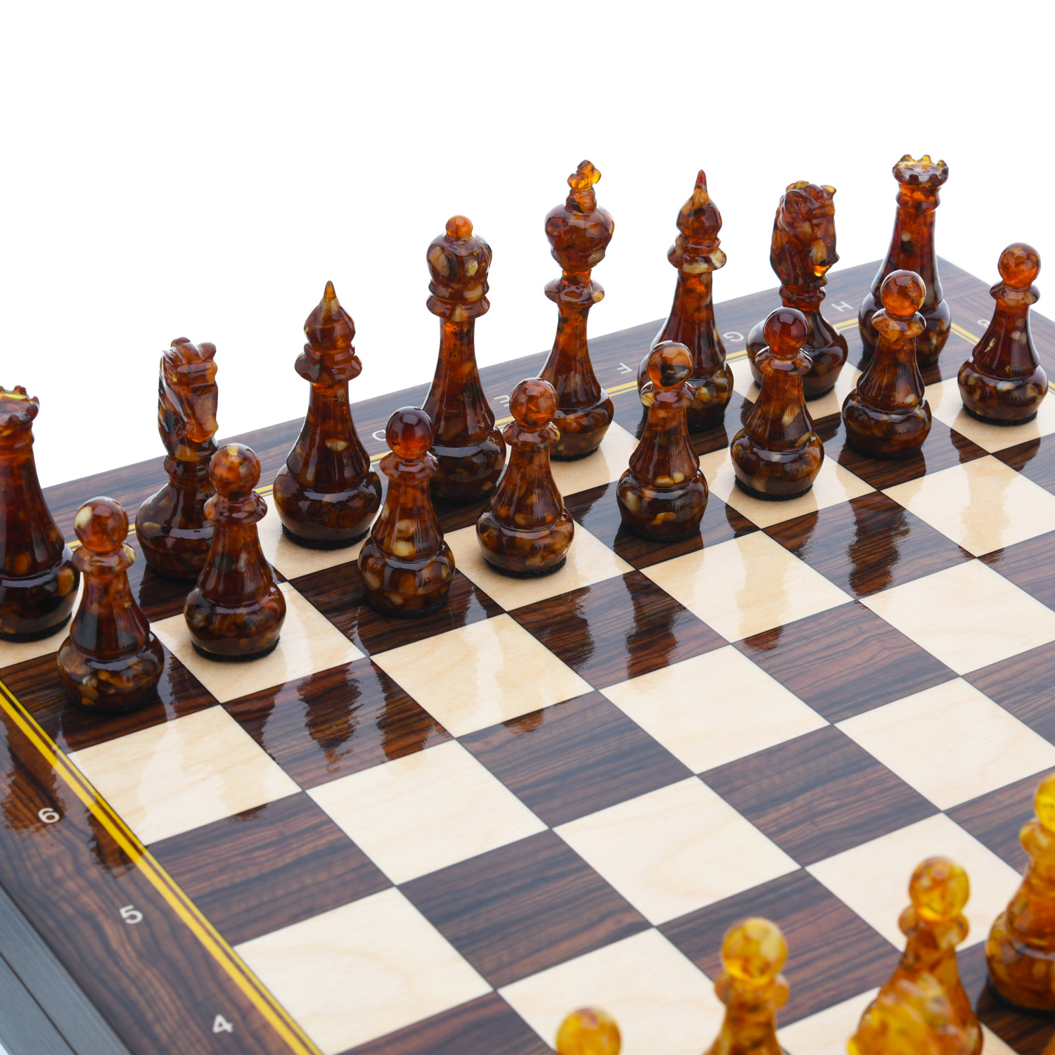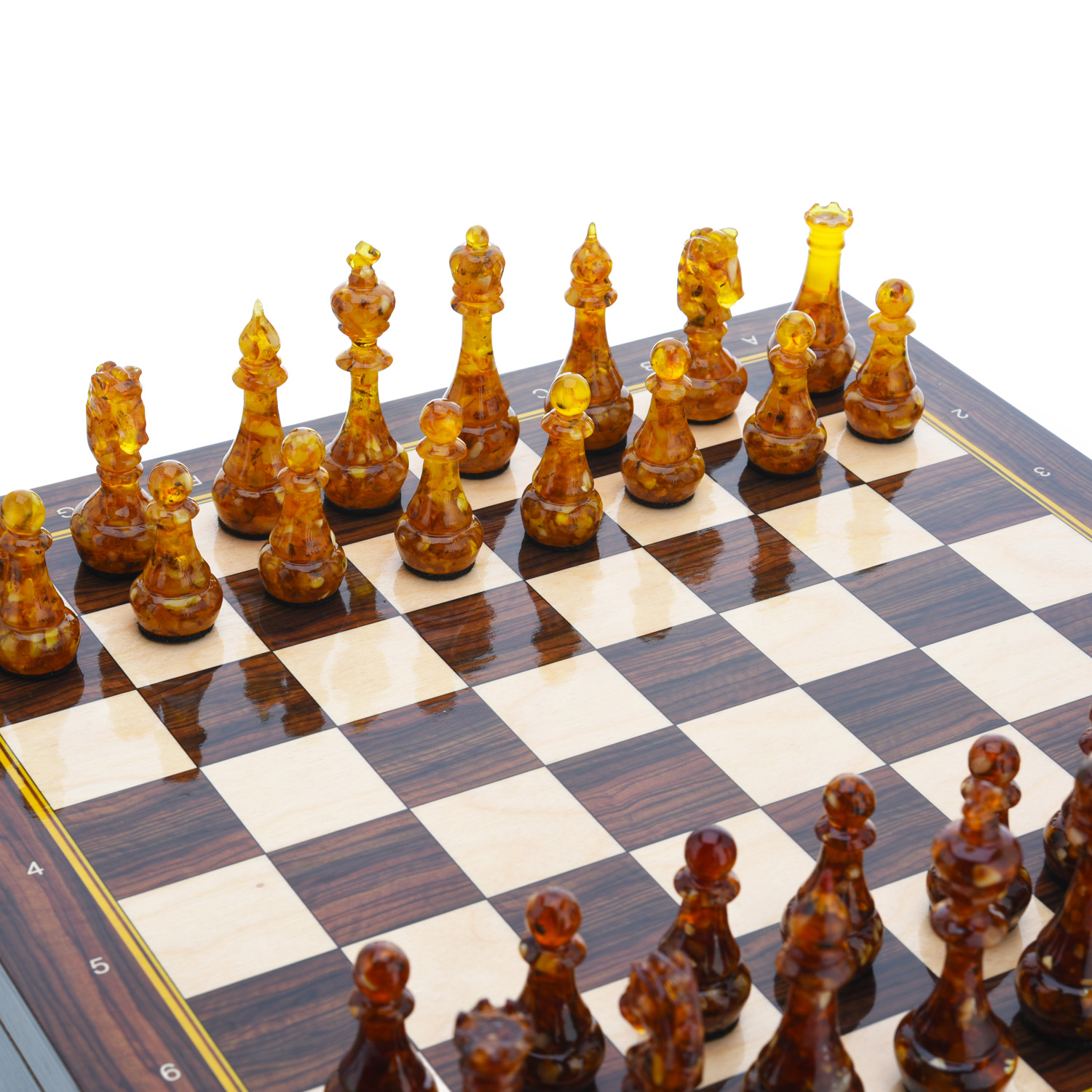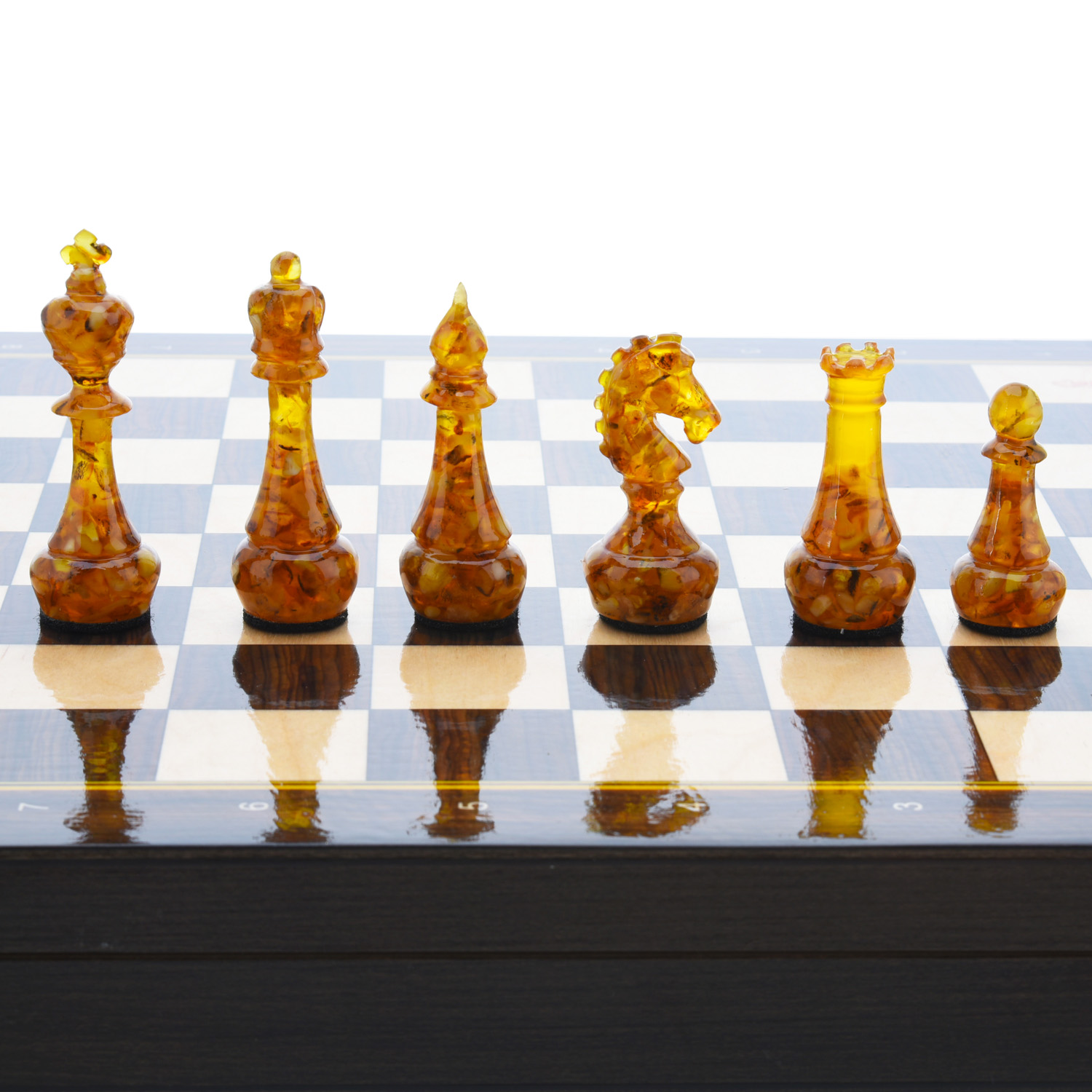 Наши эксклюзивные шахматы - это не просто потоковая продукция, а произведение искусства, в разработке которого мы учитываем не только внешнюю красоту, но и функциональность, а фигуры из драгоценного балтийского янтаря определенно добавляют дорогому шахматному набору элитарности, делая его неповторимым и элегантным.
