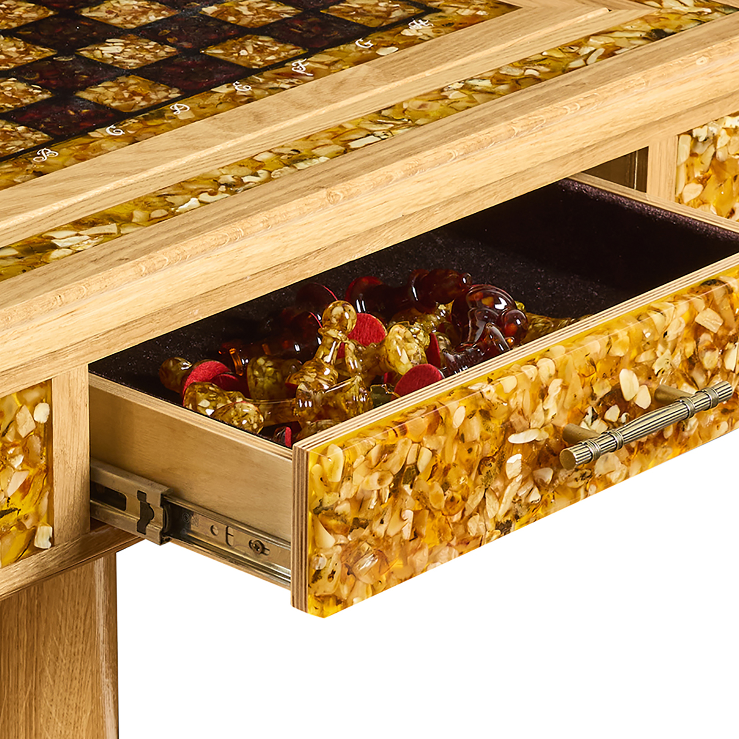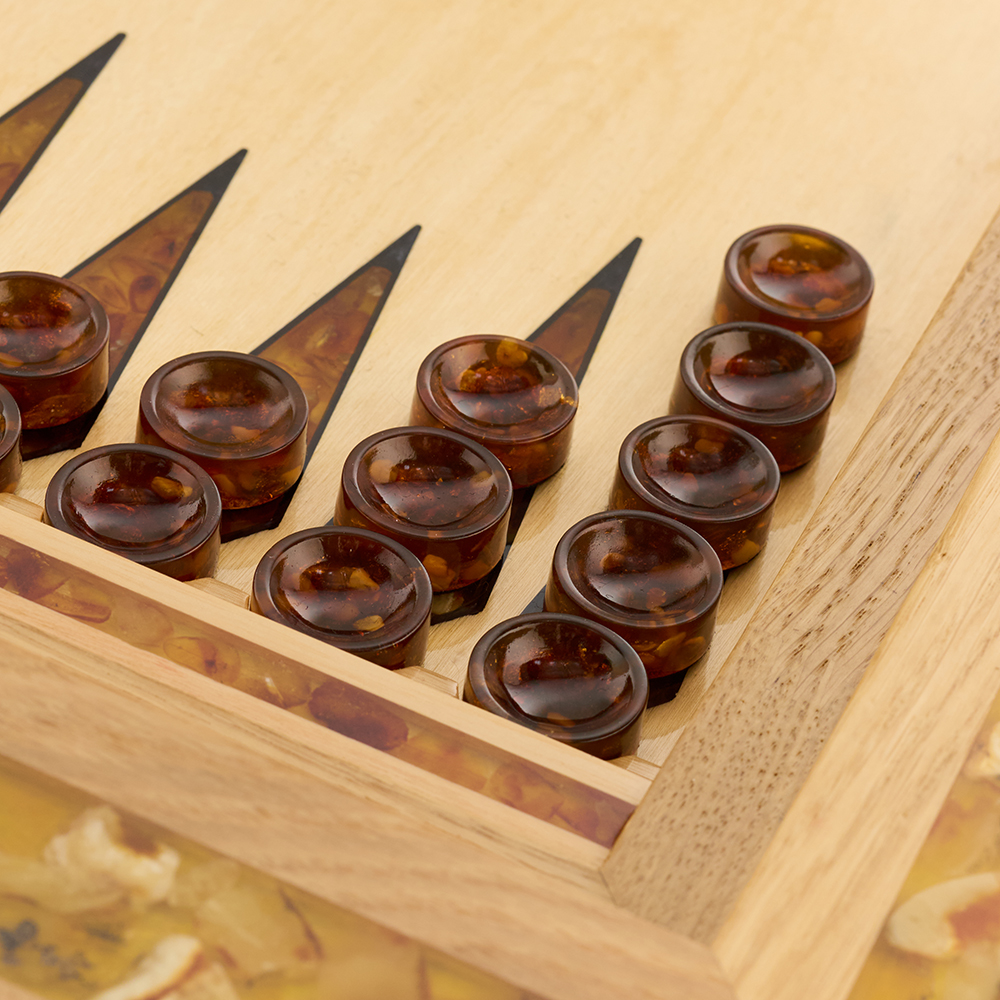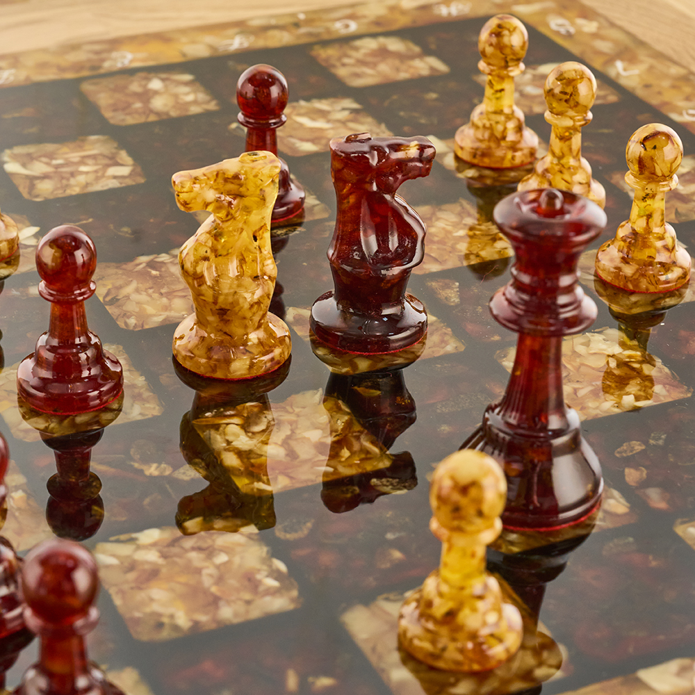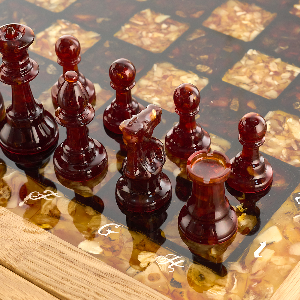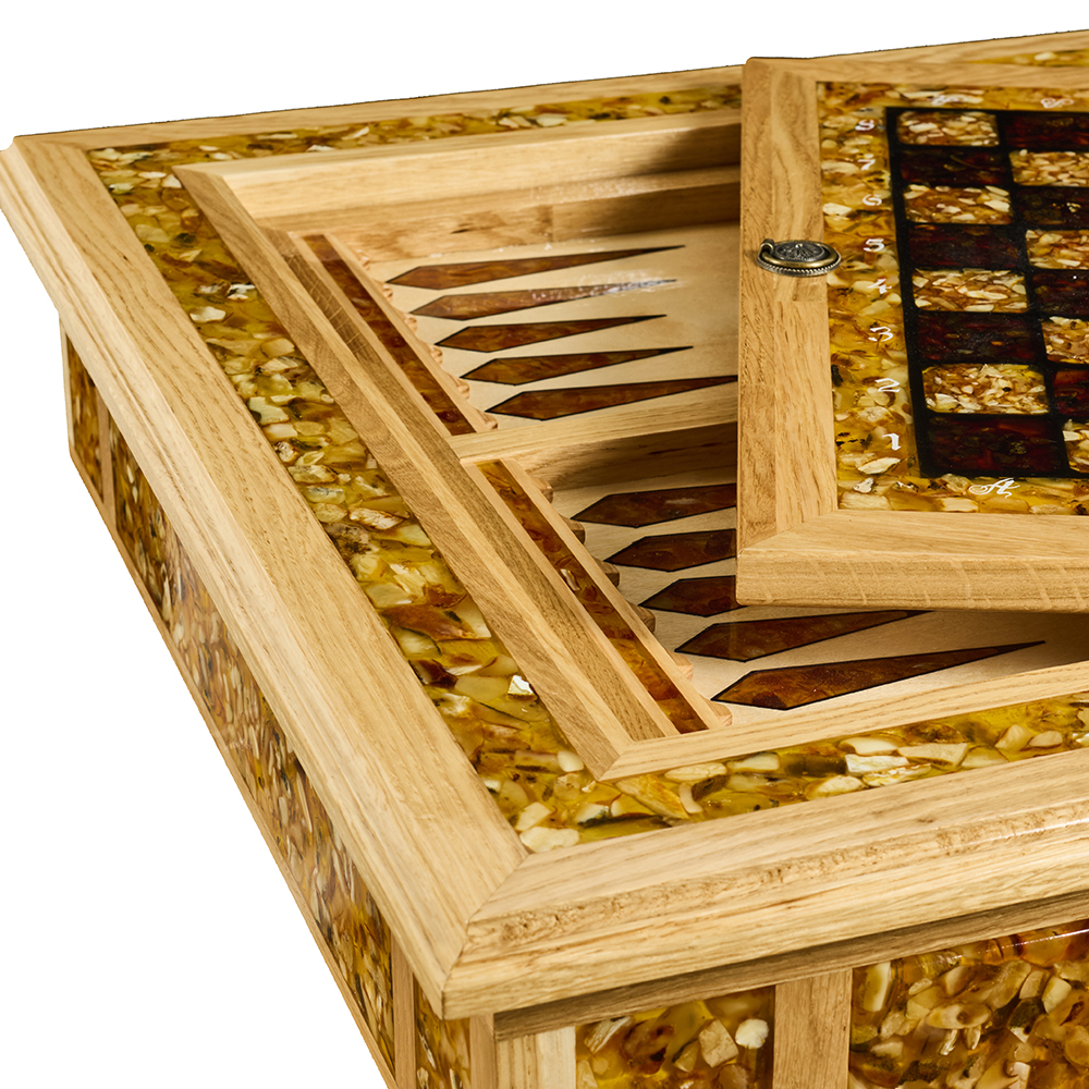 Янтарный стол с шахматами и нардами.