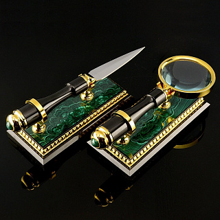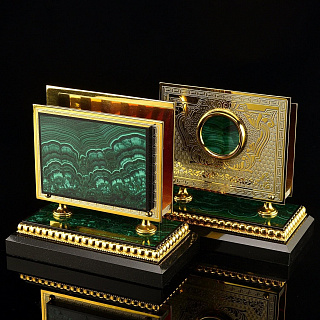 Бизнес-набор с флешкой и визитницей из малахита. Златоуст