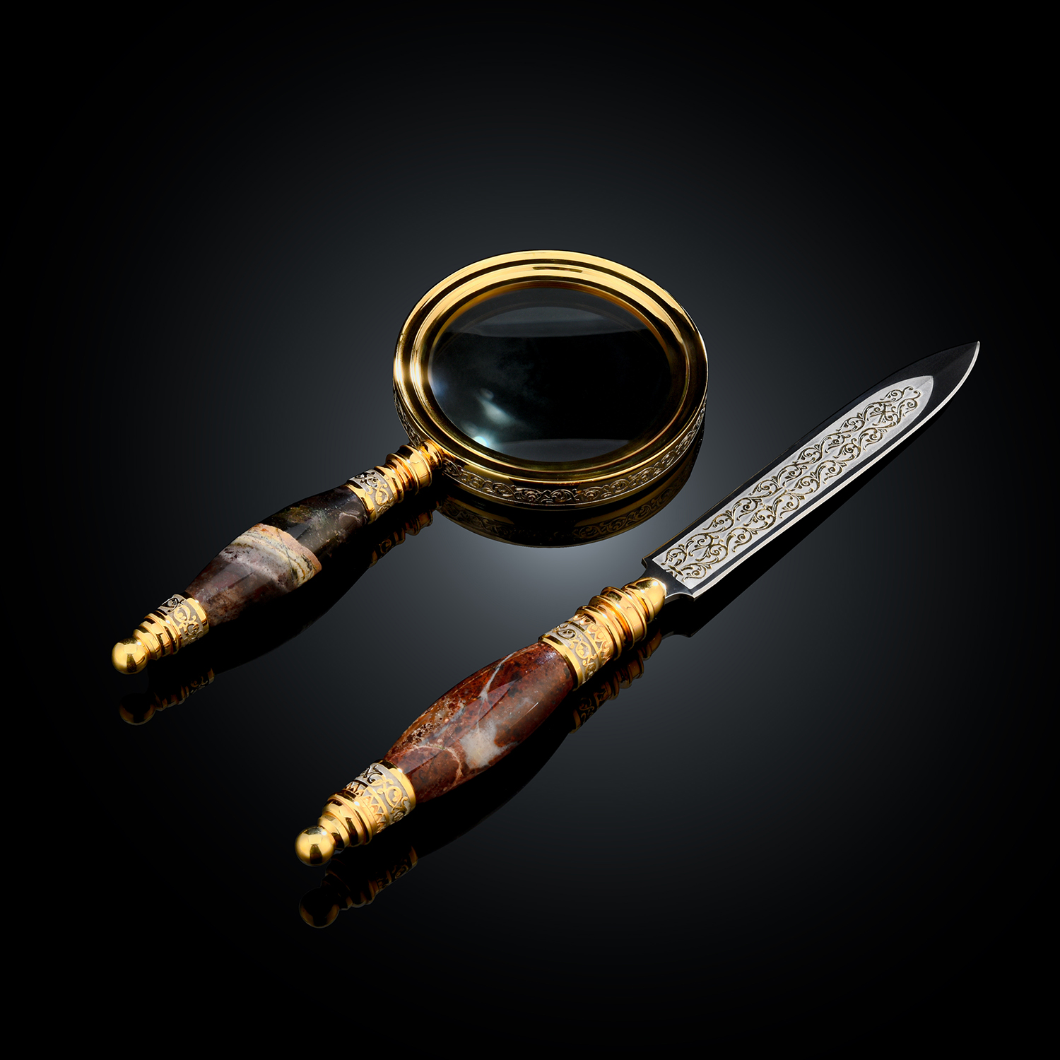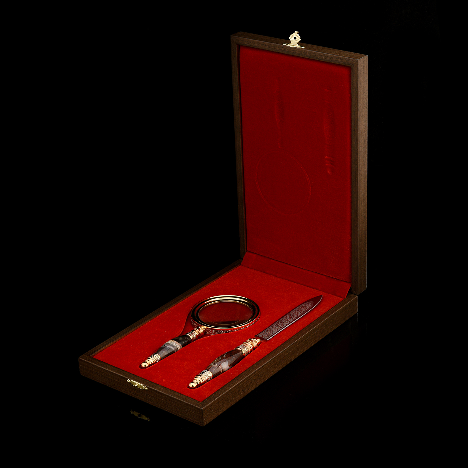 Набор с лупой и ножом для бумаг. Златоуст.