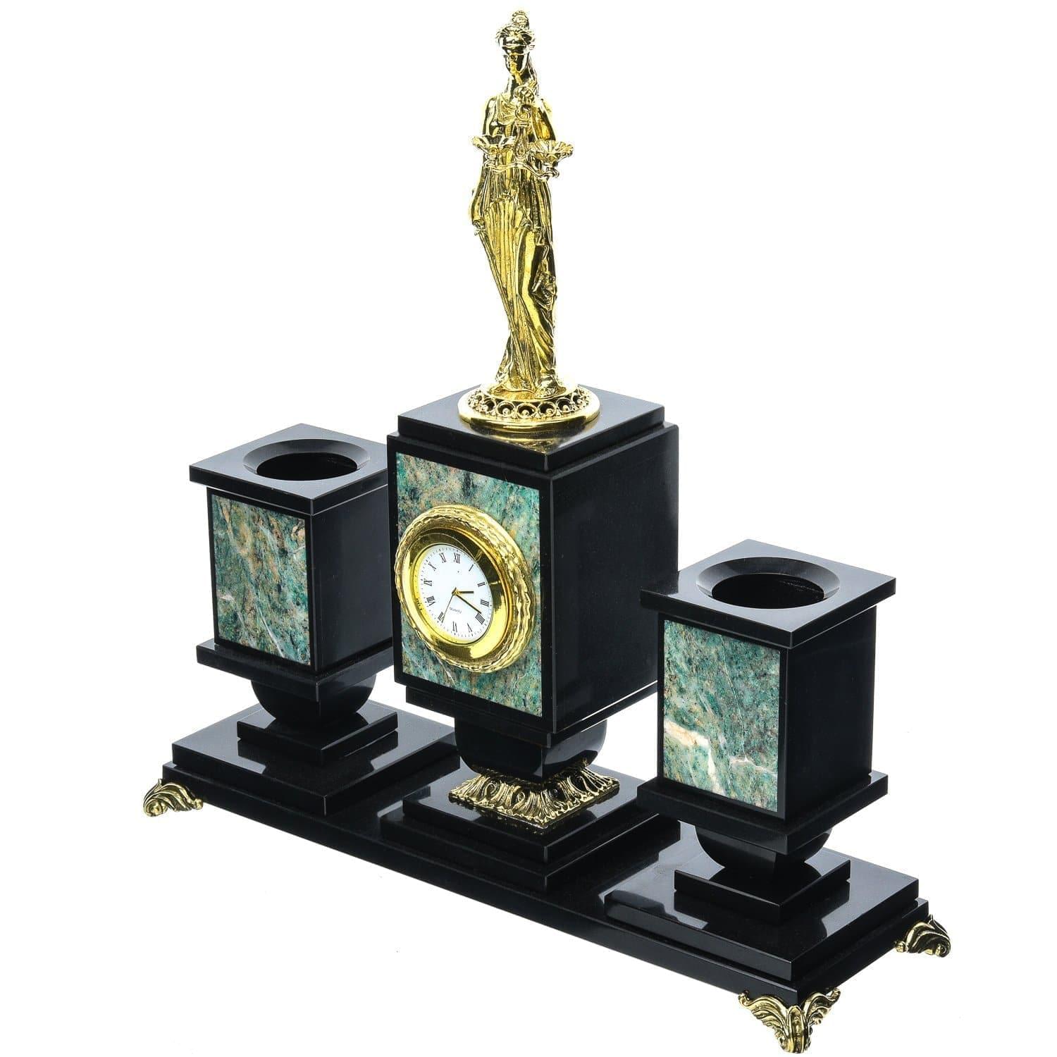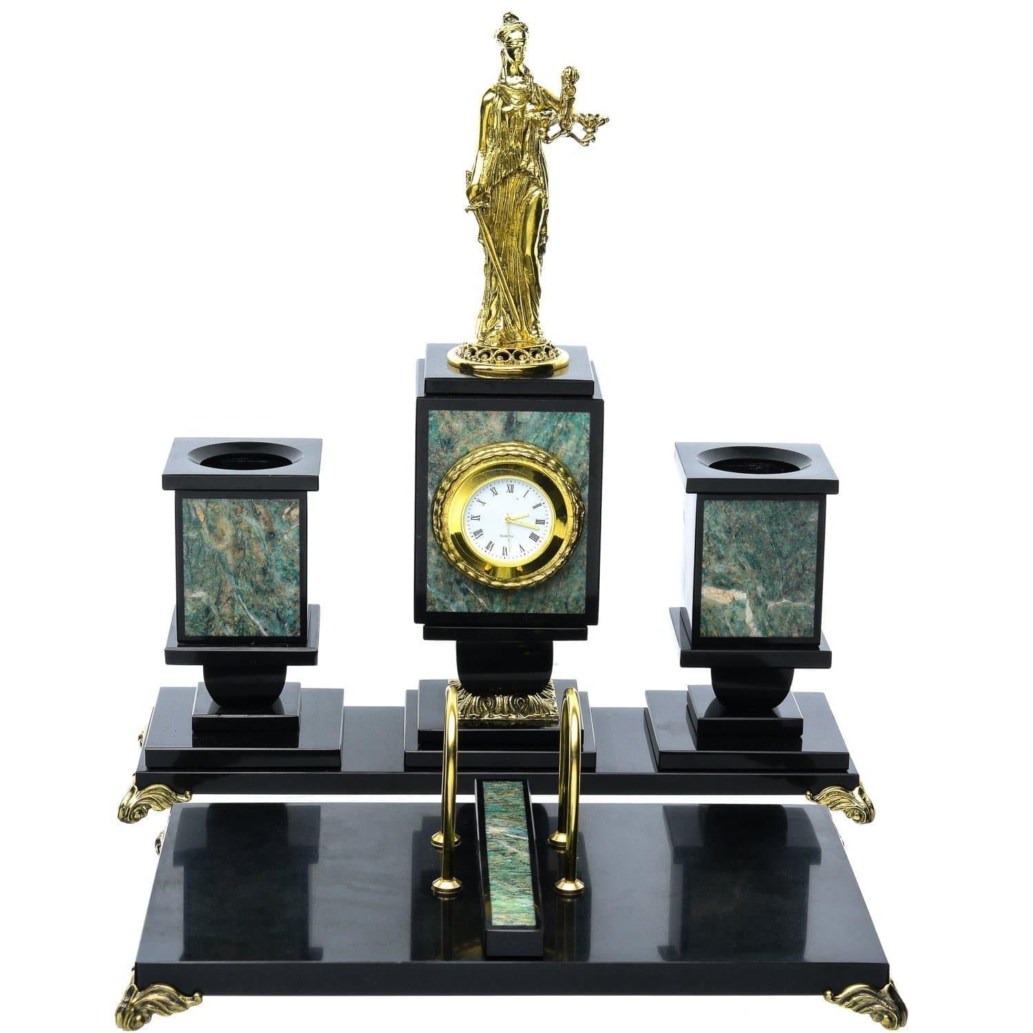 Авторская работа, настольный набор "Фемида" с часами из березита - это практичный вариант представительного подарка для друга, коллеги, руководителя, партнера по бизнесу на общий или личный, в том числе профессиональный праздник.