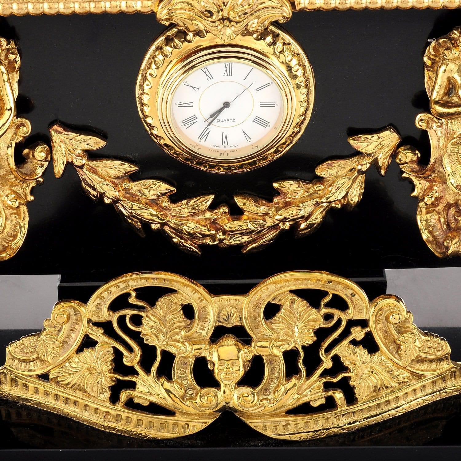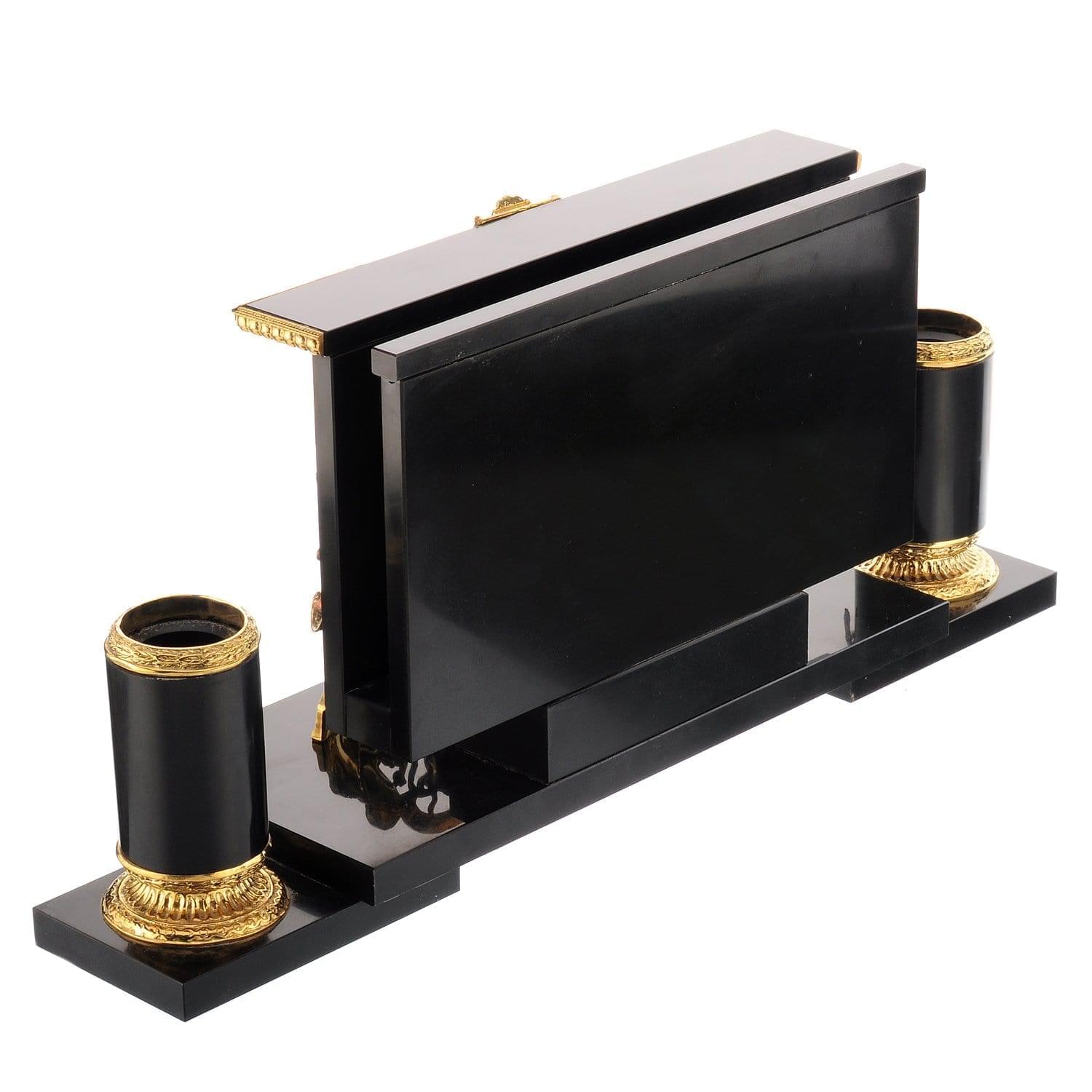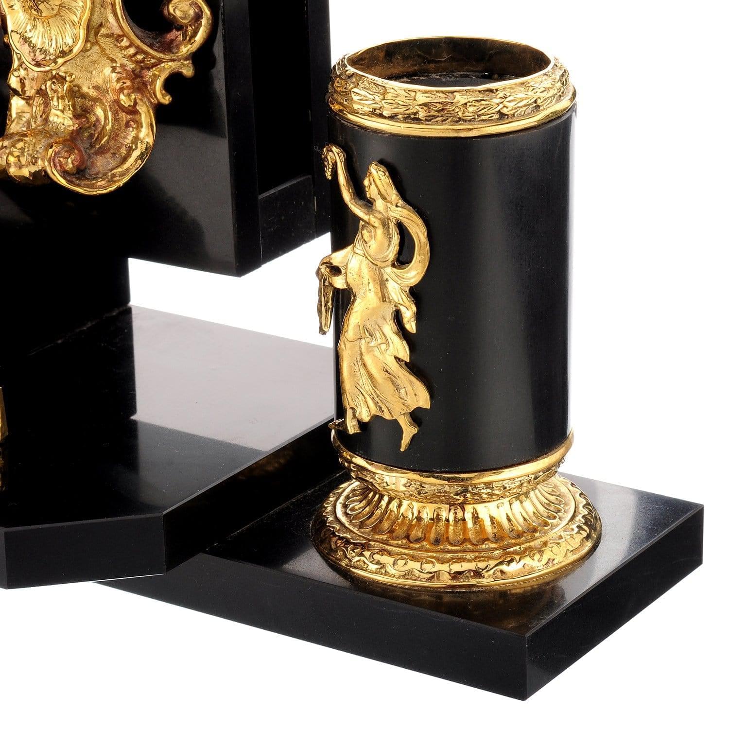Корпуса набора выточены вручную из долерита - камня, обладающего чудесными природными свойствами. Он усмиряет гнев и раздражение, помогает собраться с мыслями и силами. Позолоченные детали, украшающие каменные корпуса, являются образцами бронзового литья. Это старинный народный промысел, а его штучные образцы со временем обретают высокую антикварную ценность. Бронза представляет собой сплав на основе меди с небольшой долей компонента, а медь гармонизирует пространство вокруг себя, нейтрализует вредные воздействия электроизлучений и геопатогенных зон. Она усиливает природные свойства натурального камня.