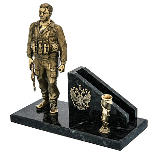 Настольная визитница из бронзы и камня «Пожарная охрана Росcии»