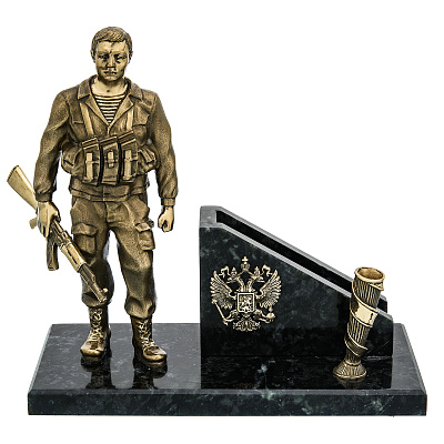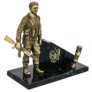 Визитница настольная из бронзы и камня «Федерация Профсоюзов »
