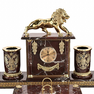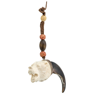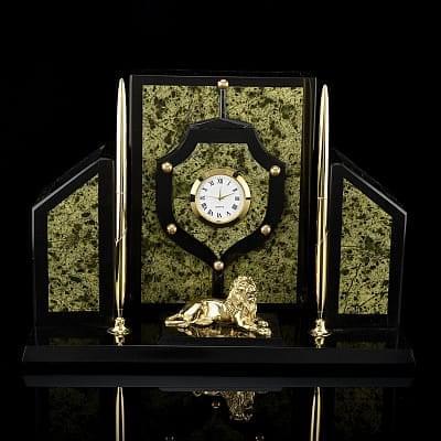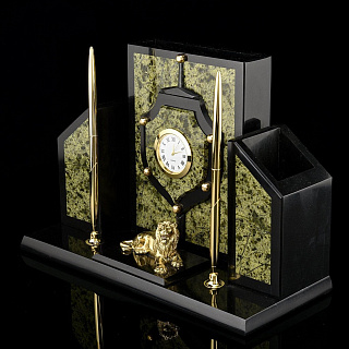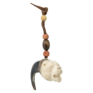 Подставка под ручку со скульптурой из рога лося и кости мамонта «Медведь»