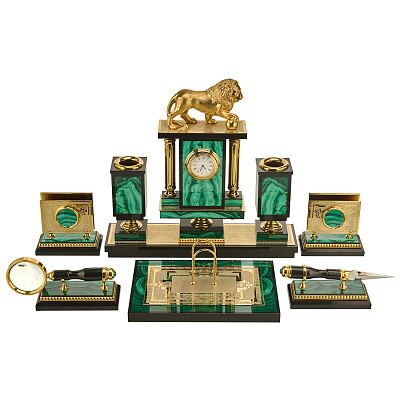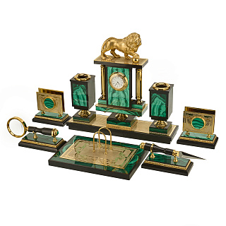 Настольный письменный набор из малахита «Лев». Златоуст