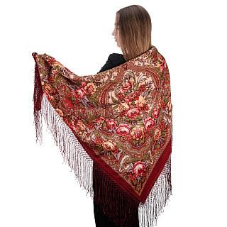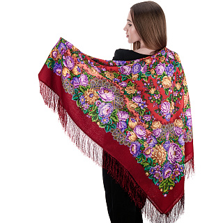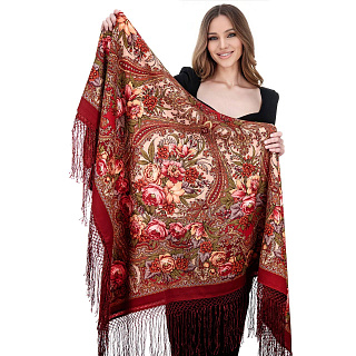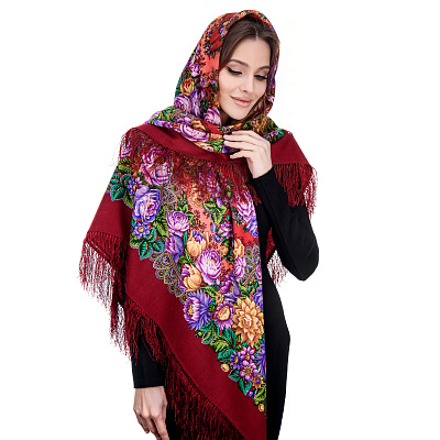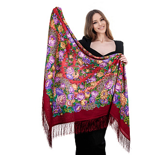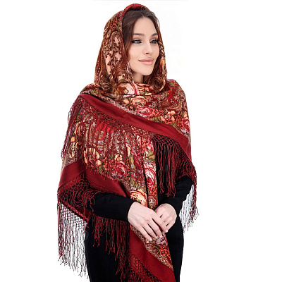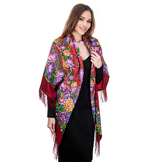 Платок ПавлоПосадский шерстяной «Цвет граната» 148х148 см