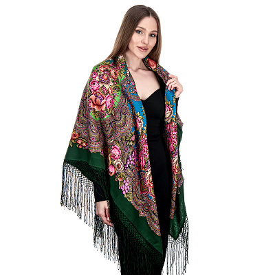 Платок ПавлоПосадский шерстяной «Сибирская красавица» 146х146 см