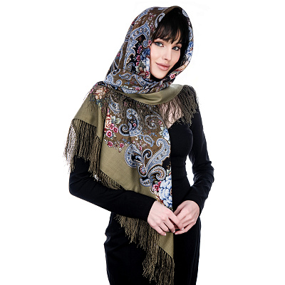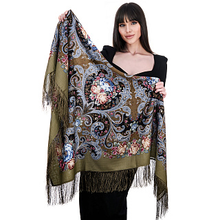 Платок ПавлоПосадский шерстяной «Василиса» 148х148 см