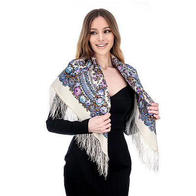 Платок ПавлоПосадский шерстяной «Милый образ» 125х125 см