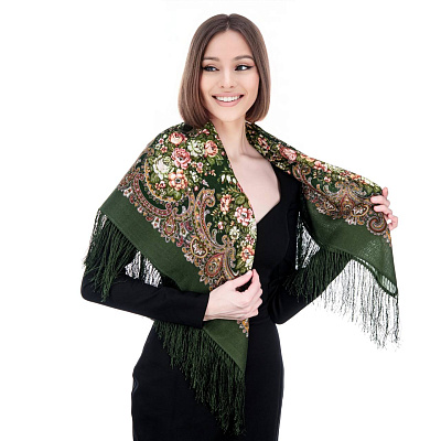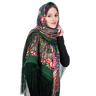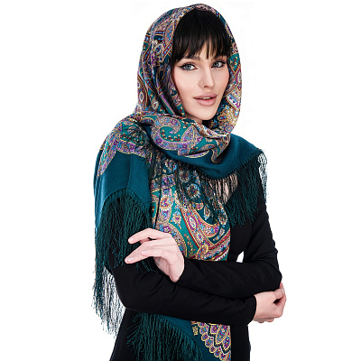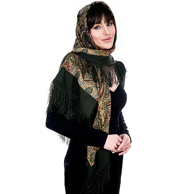 Платок ПавлоПосадский шерстяной «Камаринская» 89х89 см